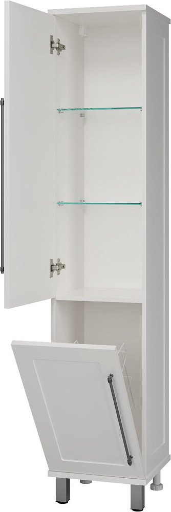 Шкаф-пенал для ванной Misty Марта L белый глянцевый, с бельевой корзиной