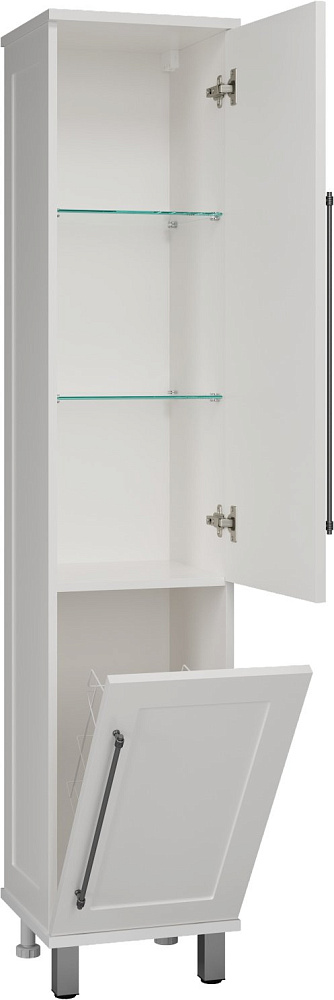 Шкаф-пенал для ванной Misty Марта R белый глянцевый, с бельевой корзиной