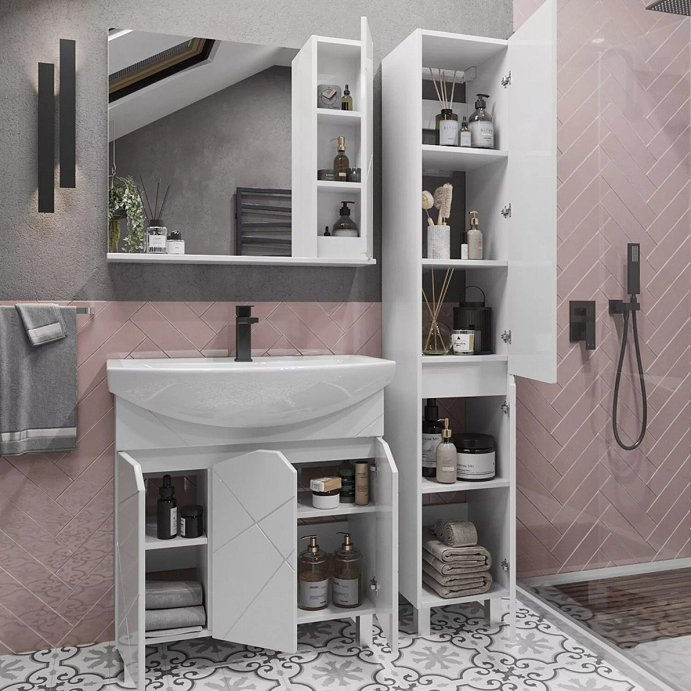 Шкаф-пенал для ванной SanStar Каскад напольный, белый