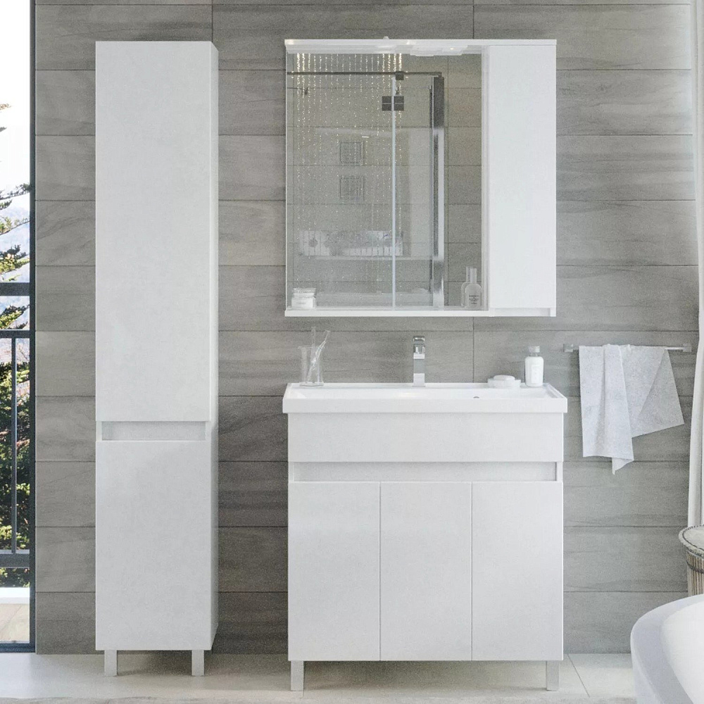 Шкаф-пенал для ванной SanStar Квадро напольный, белый