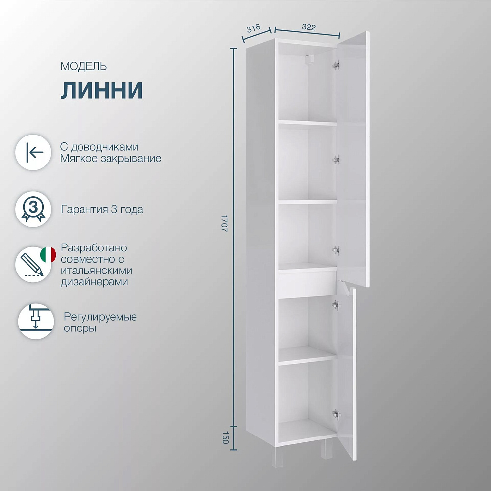 Шкаф-пенал для ванной SanStar Линни 35 напольный, белый