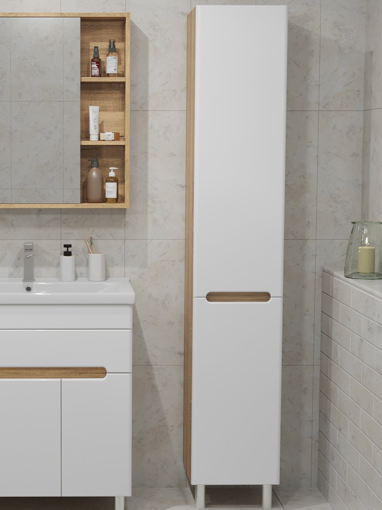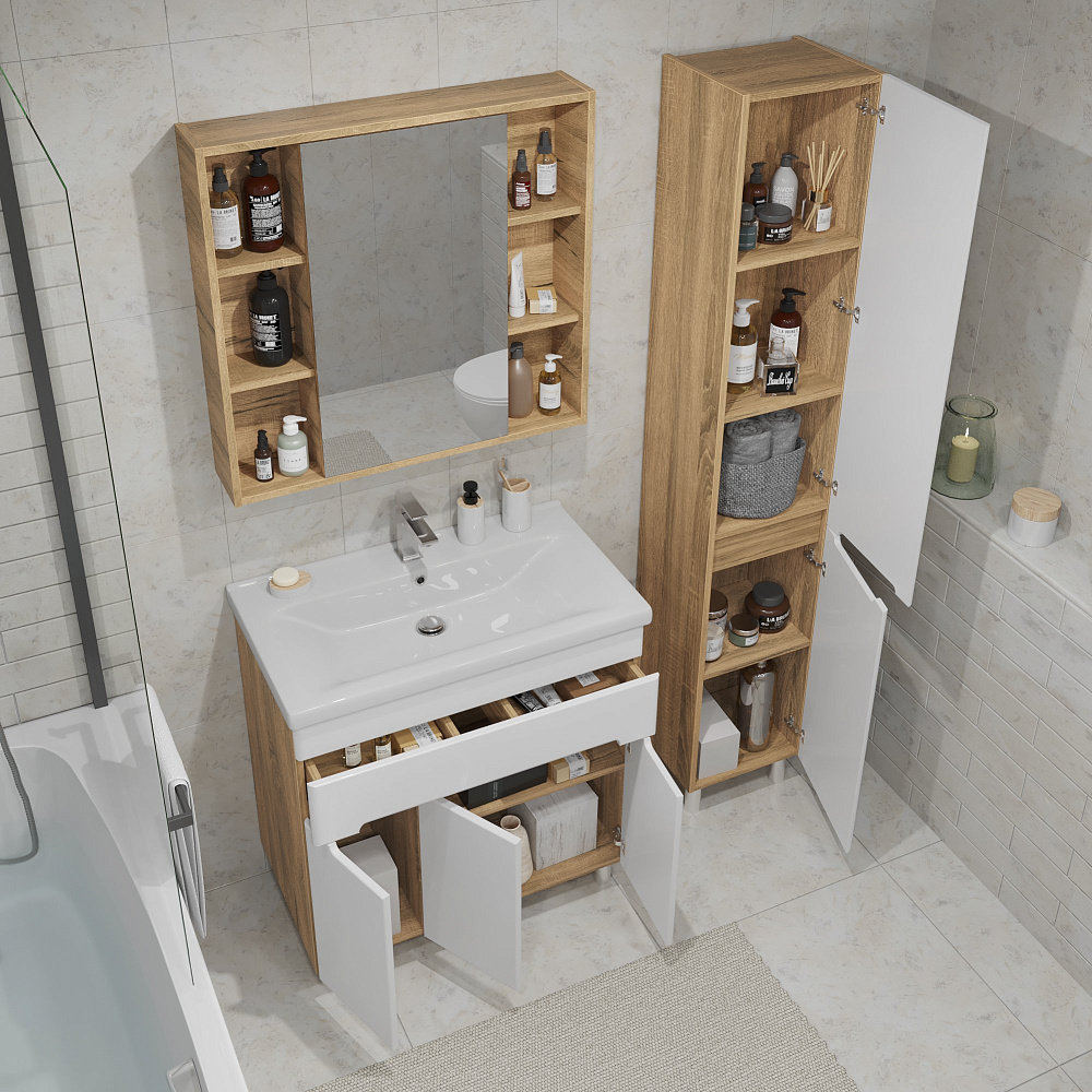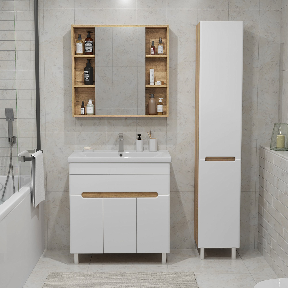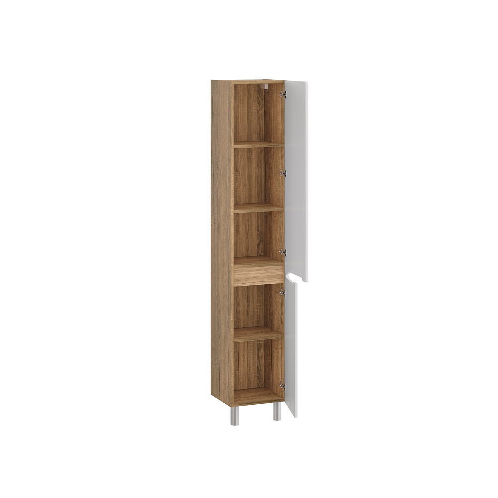 Шкаф-пенал для ванной SanStar Модена 30 глянцевый белый, дуб вотан