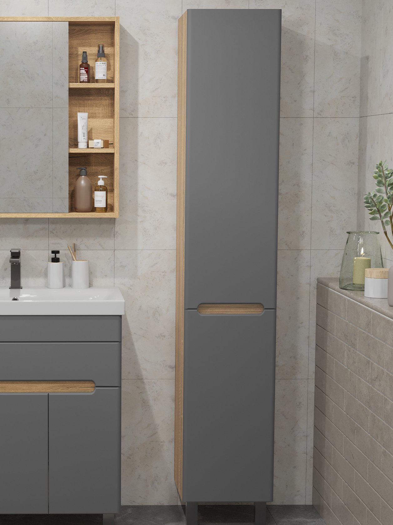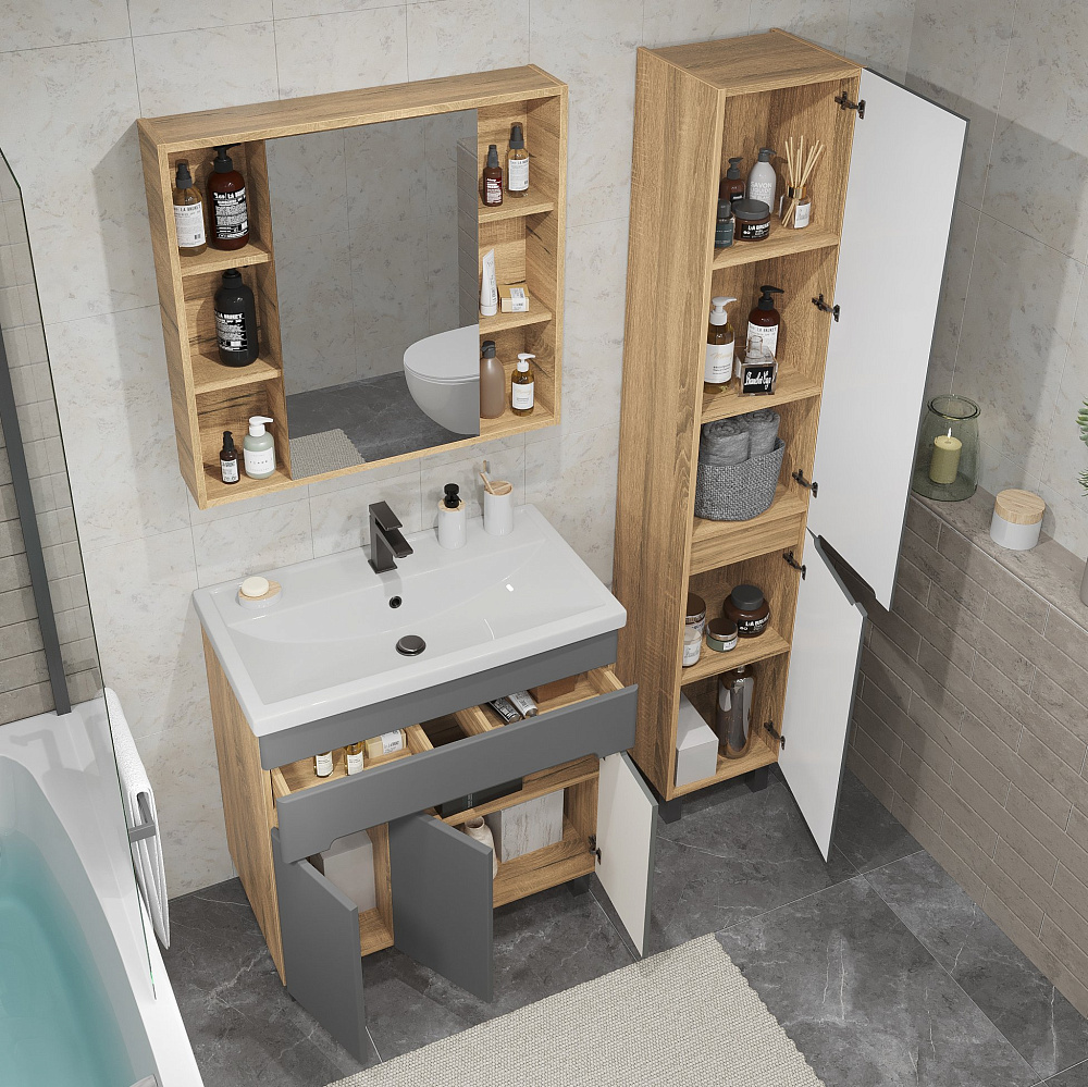Шкаф-пенал для ванной SanStar Модена 30 графит софт, дуб вотан