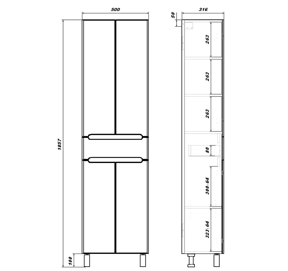 Шкаф-пенал для ванной SanStar Модена 384.1-3.4.1.АДЕ 50 универсальный, белый
