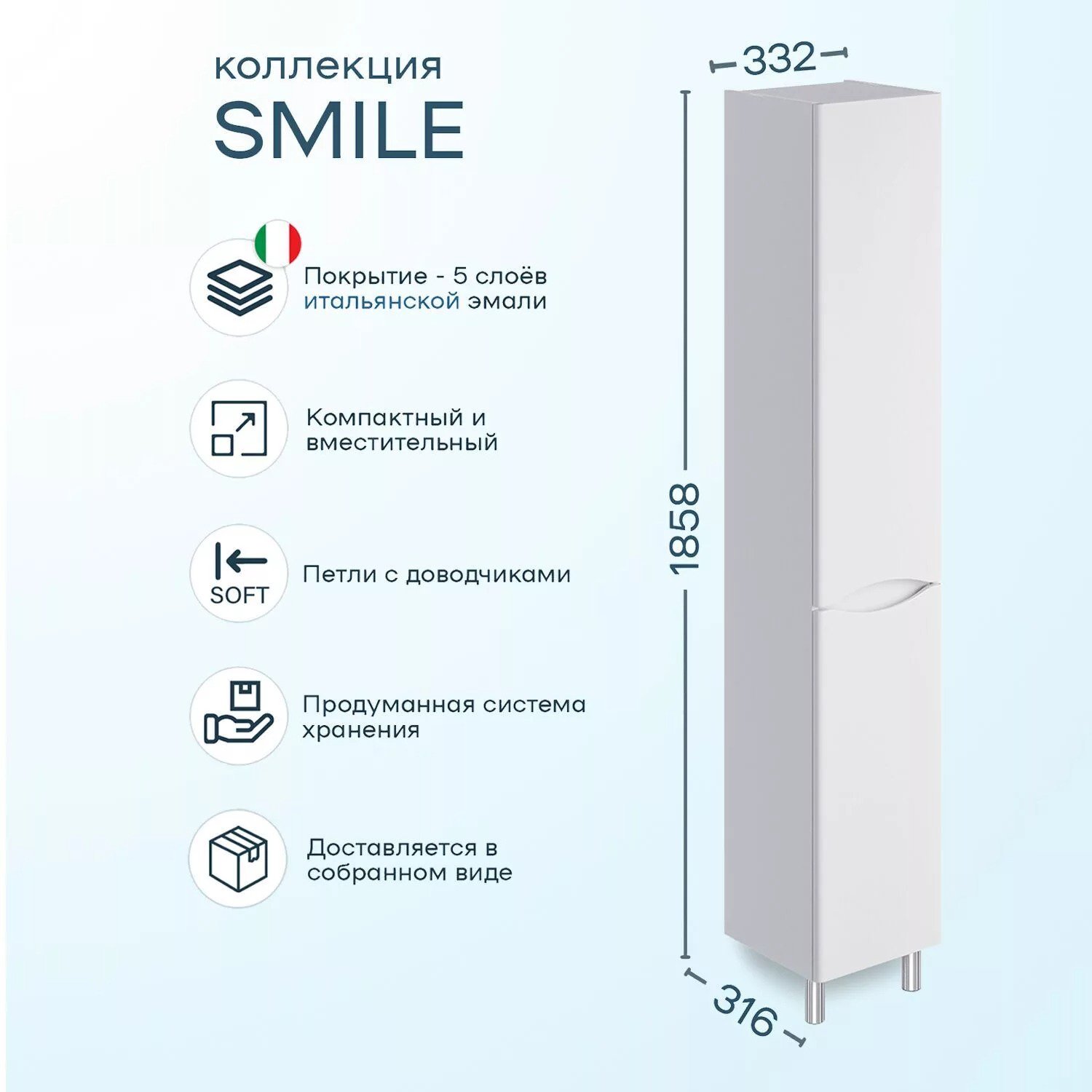 Шкаф-пенал для ванной SanStar Smile напольный, белый