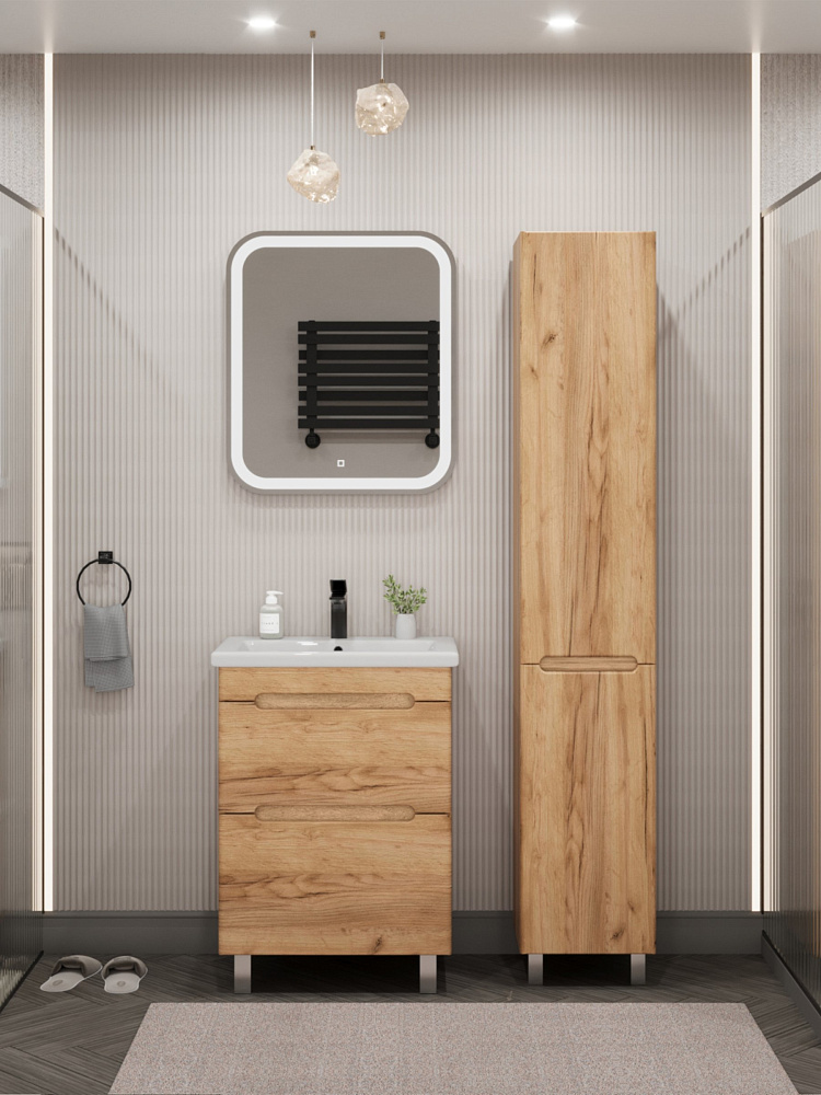 Шкаф-пенал для ванной SanStar Толедо 30 напольный, дуб крафт золотой