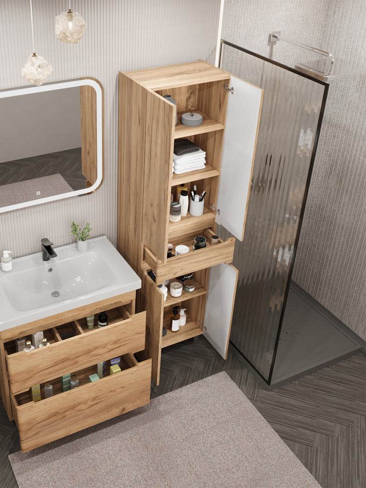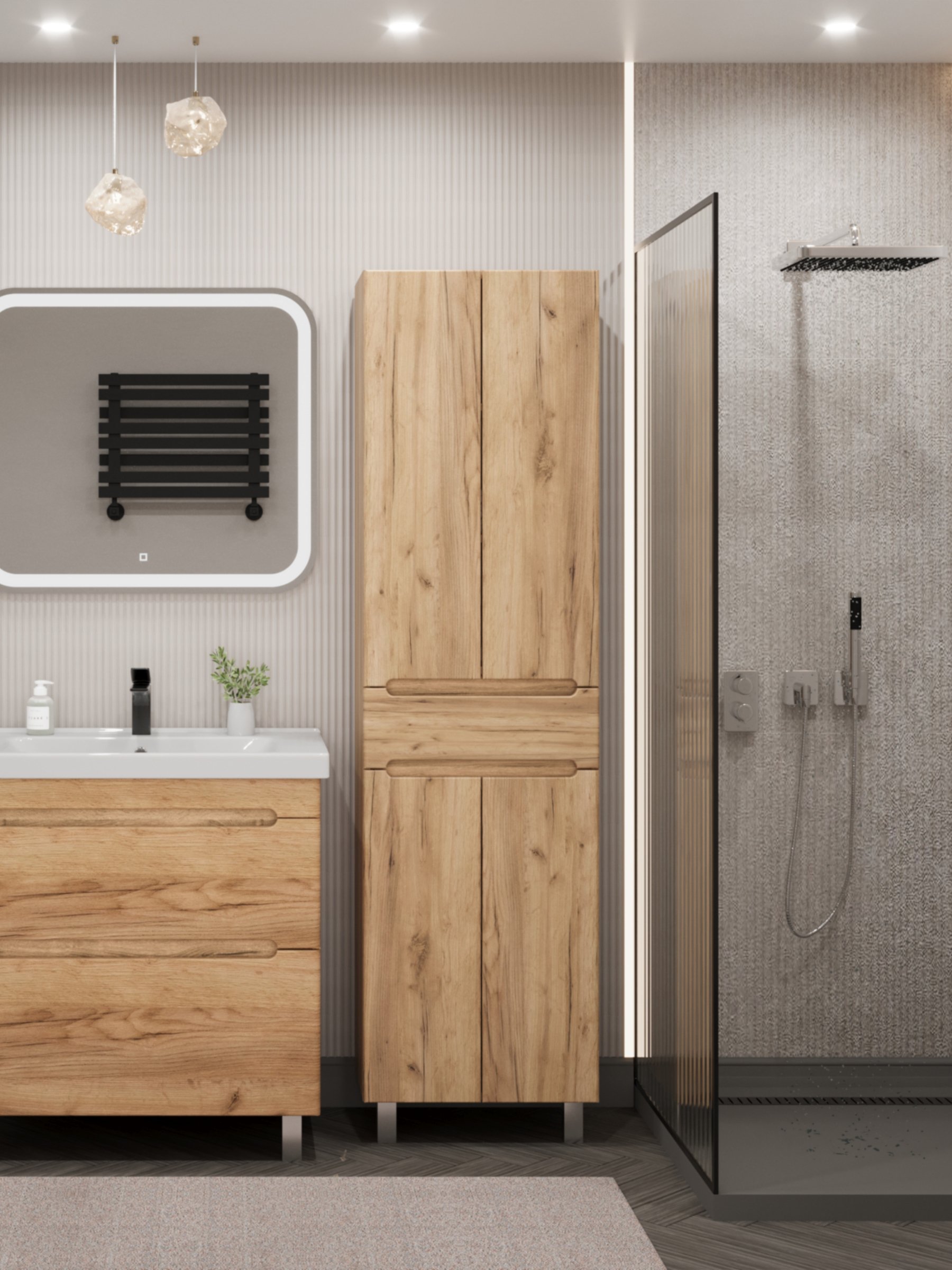 Шкаф-пенал для ванной SanStar Толедо 50 напольный, дуб крафт золотой