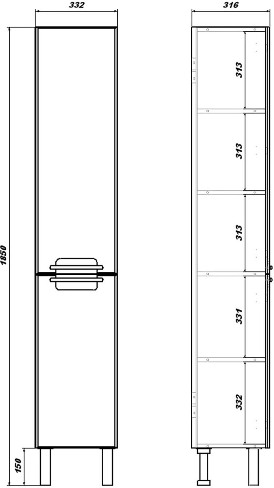 Шкаф-пенал для ванной SanStar Уника напольный, белый