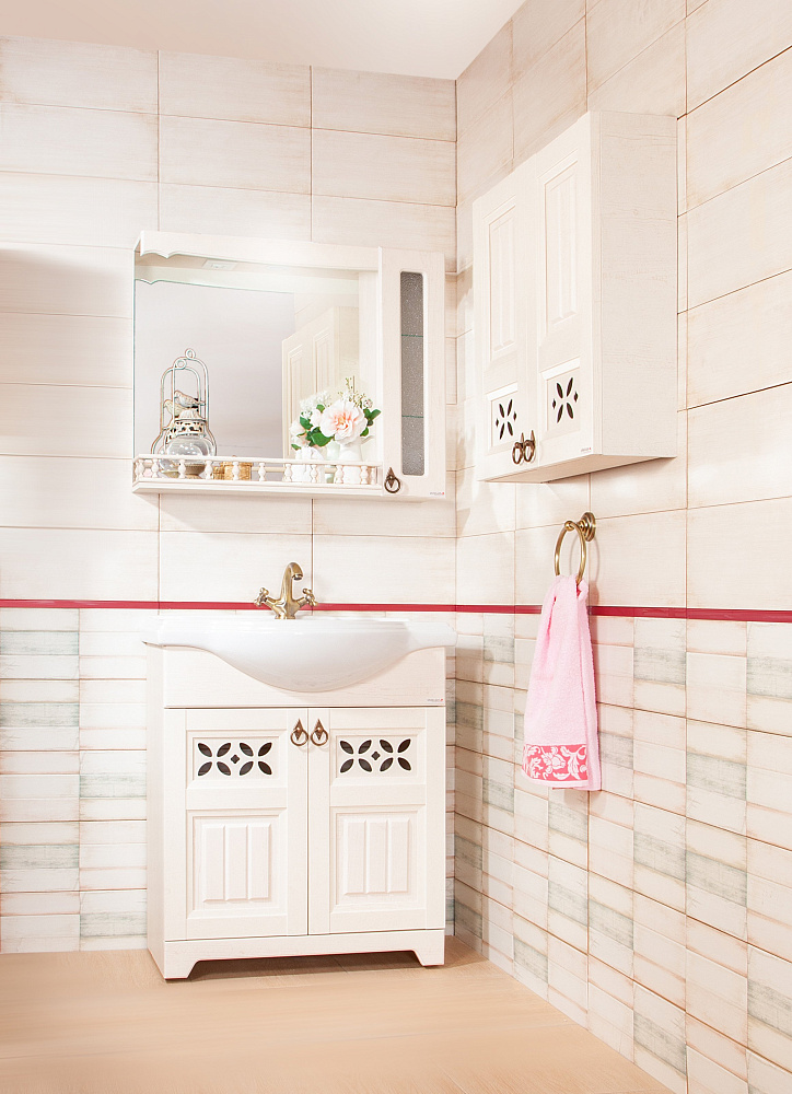 в стиле прованс. Модель шириной всего 20 см станет дополнением к зеркалу этой