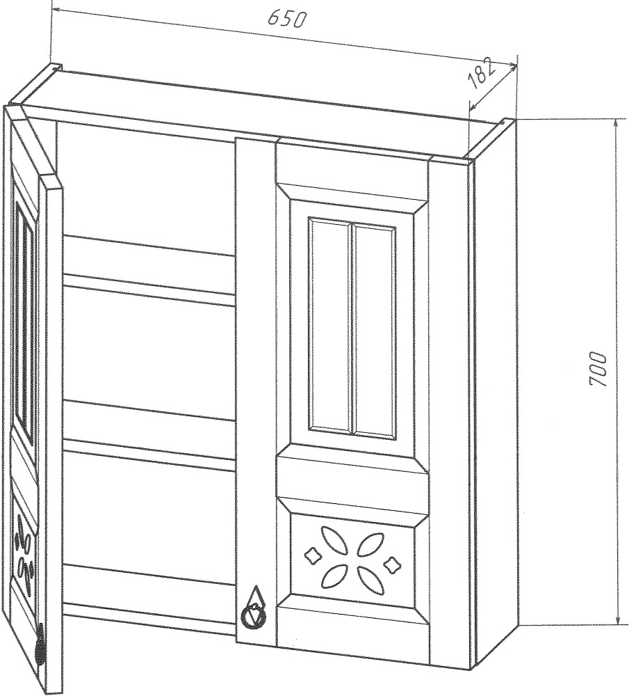 декоративные прорези на фасаде, ручки цвета состаренной бронзы создают теплую, уютную