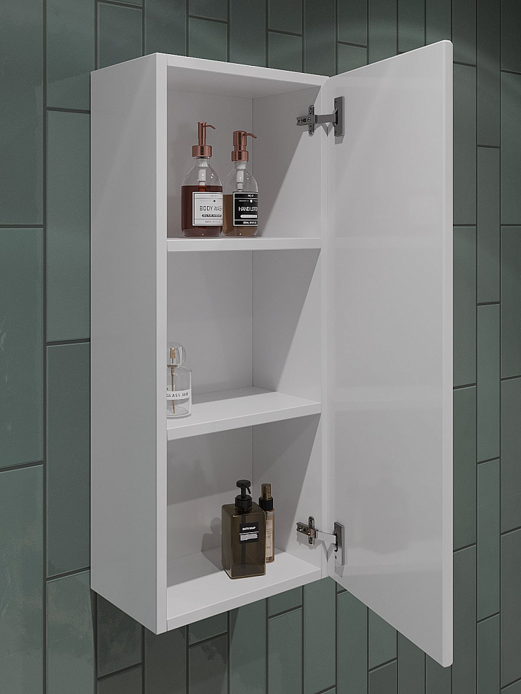 Шкаф «Стиль» от российской компании 1 Orange позволит навести порядок в ванной комнате. Модель из высококачественных материалов в белом глянцевом исполнении рассчитана на длительную эксплуатацию в условиях повышенной влажности. Для организации аккуратного хранения внутреннее пространство разделено двумя полками. Петли с доводчиками надежно фиксируют распашную дверь.