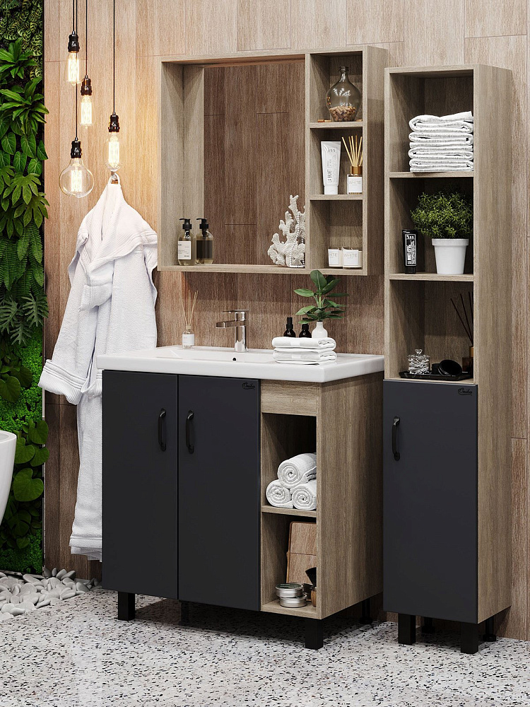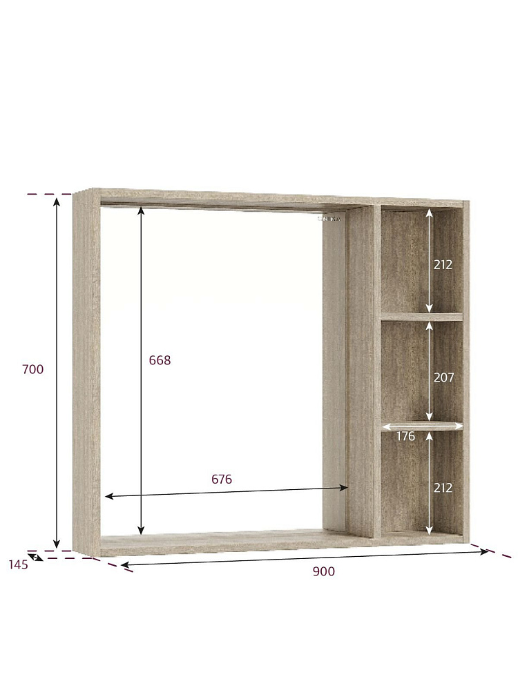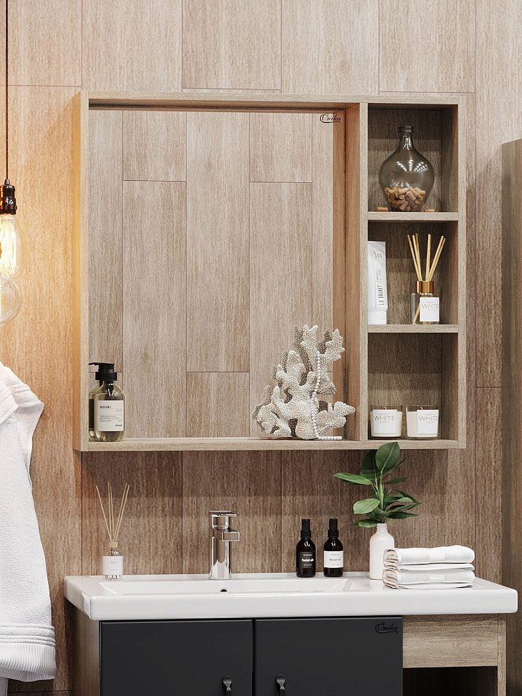 Шкаф-зеркало для ванной комнаты Onika Тимбер 90 дуб сонома, универсальный / 90х14х70 см