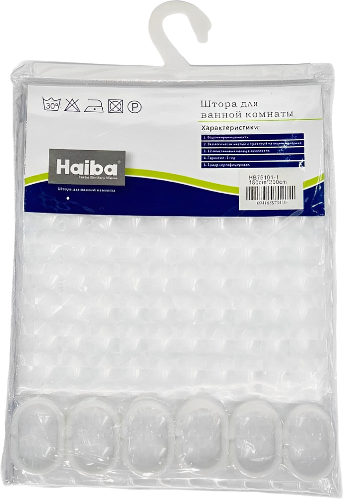 Штора для ванной Haiba HB75101-1 белая, 3D