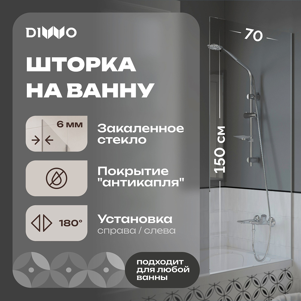 Отзывы о Шторка на ванну DIWO Ростов 4GW009 неподвижная, 70x150, хром