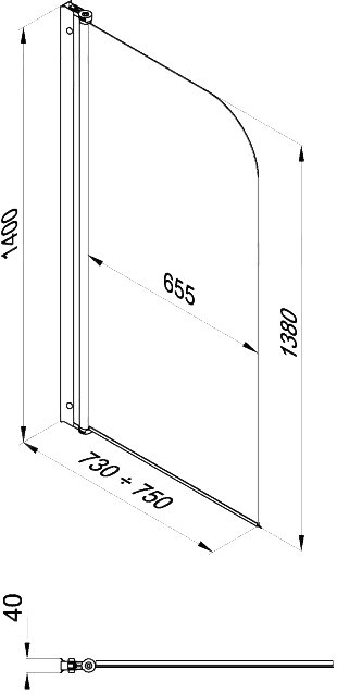 Шторка на ванну Triton Соло Щ0000038541 75, профиль глянцевый хром