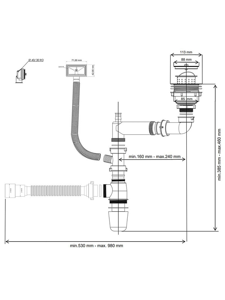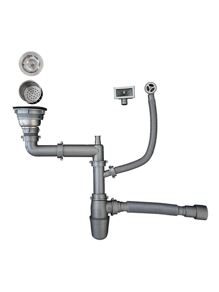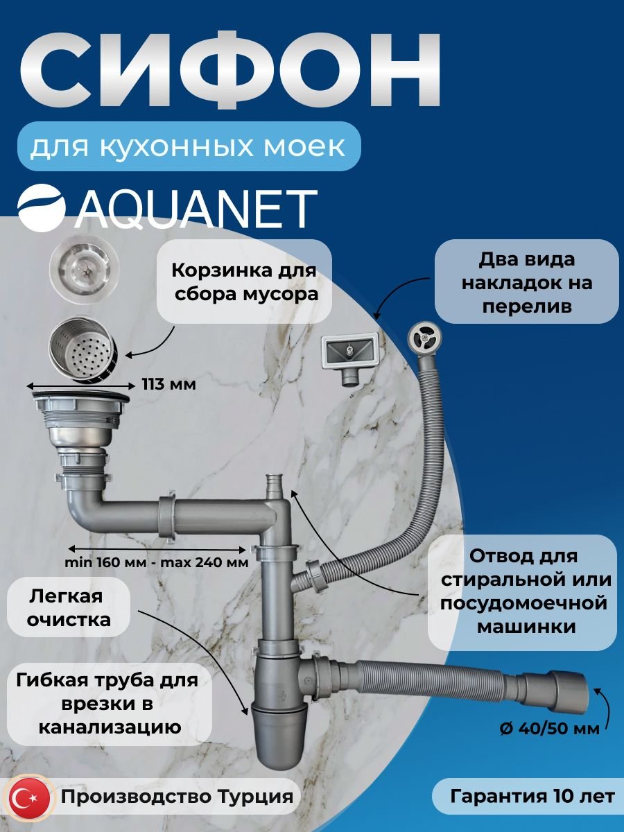 Отзывы о Сифон для мойки бутылочный экономящий пространство, с чашкой из нержавеющей cтали 3 1/2'',с перел, серый, Aquanet