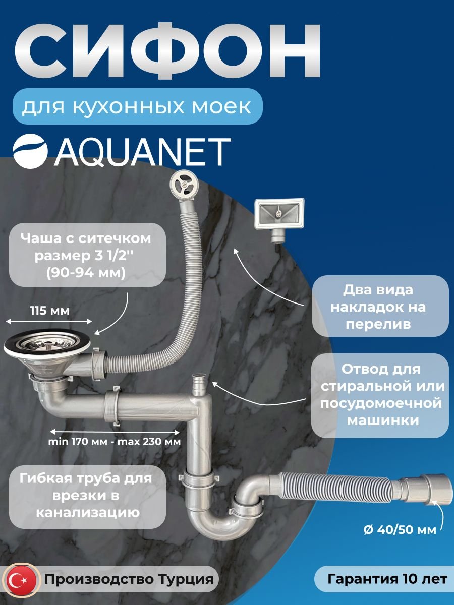 Отзывы о Сифон для мойки экономящий пространство, с чашей из нержавеющей cтали 3 1/2'',с перел,с подкл.с/м серый,Aquanet