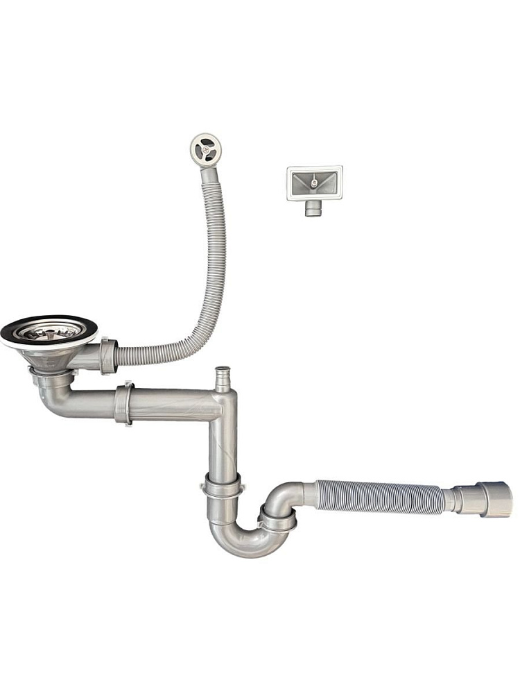 Сифон для мойки экономящий пространство, с чашей из нержавеющей cтали 3 1/2'',с перел,с подкл.с/м серый,Aquanet