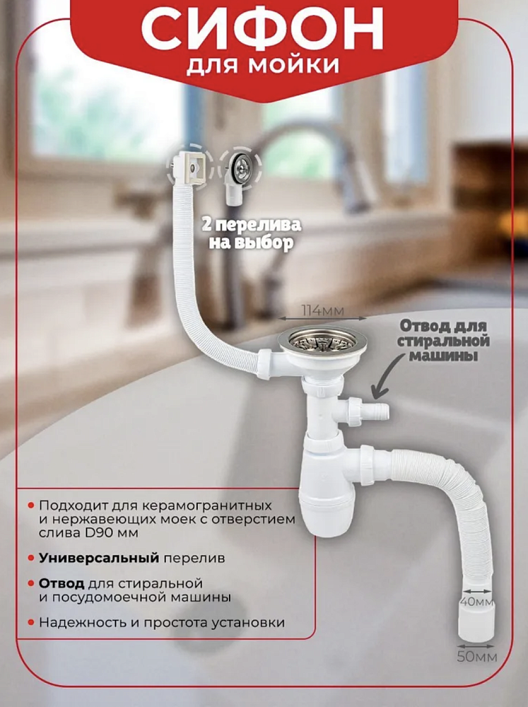 Отзывы о Сифон для мойки Wirquin Минор 30987144 40 мм, бутылочный, хром, с отводом для подключения бытовой техники