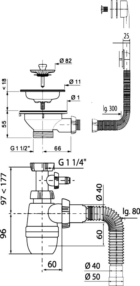 Сифон для мойки Wirquin Минор 30987144 40 мм, бутылочный, хром, с отводом для подключения бытовой техники