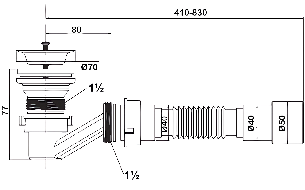 Сифон для поддона BETTOSERB 125340 40 мм, глянцевый хром, нержавеющая сталь