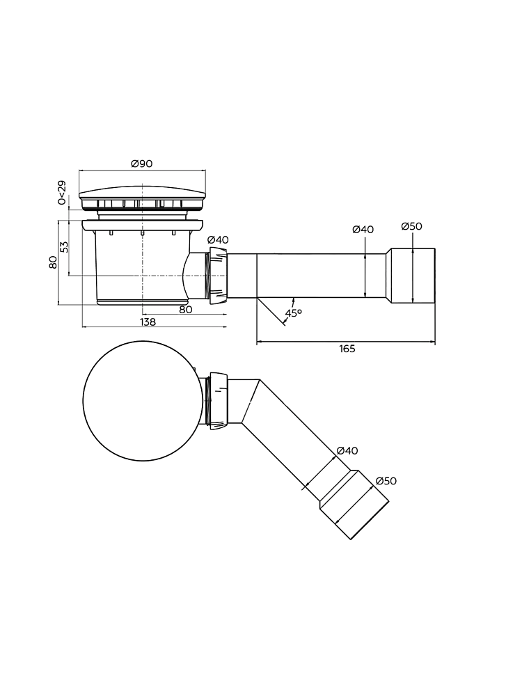 - Гидрозатвор 50 мм.