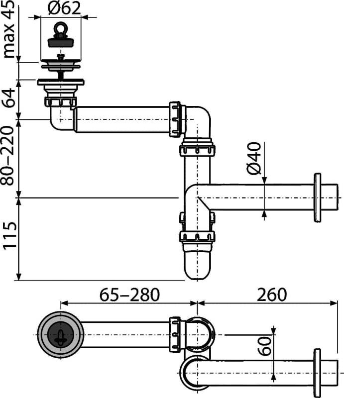 Сифон для раковины AlcaPlast A413 40 мм, трубный, глянцевый белый, с пробкой