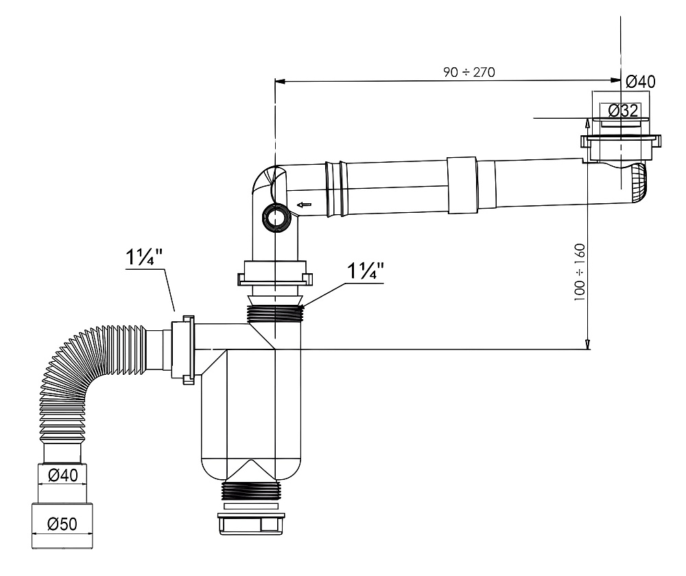 Сифон для раковины BETTOSERB 125342 32 мм, серый металлик