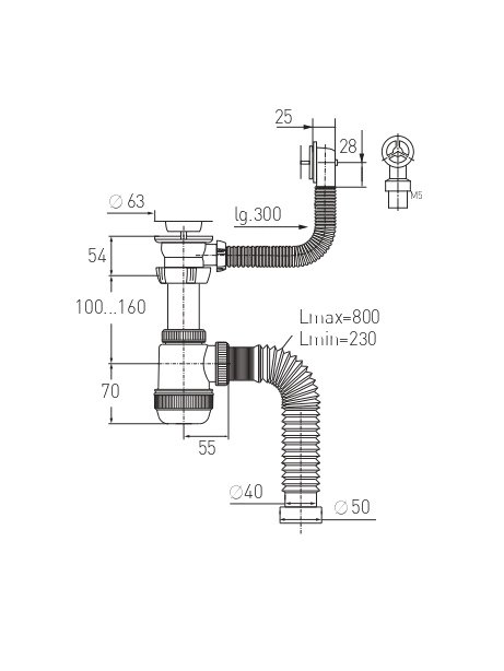Сифон для раковины DIWO Мини 30770419 40 мм, бутылочный, хром, нержавеющая сталь