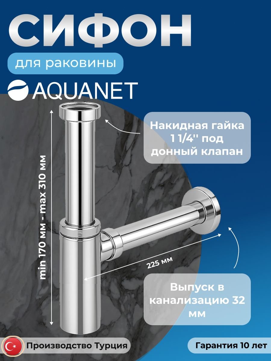 Отзывы о Сифон для раковины в ванную c накидной гайкой 1 1/4", пластик, хром, Aquanet
