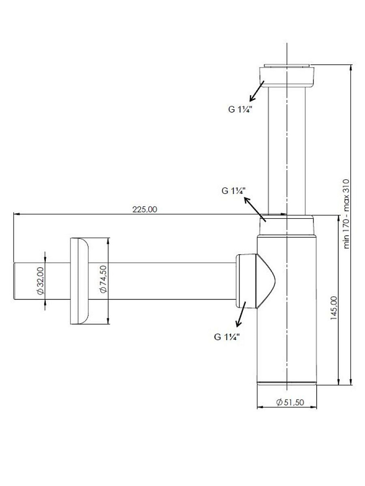 Сифон для раковины в ванную c накидной гайкой 1 1/4", пластик, хром, Aquanet