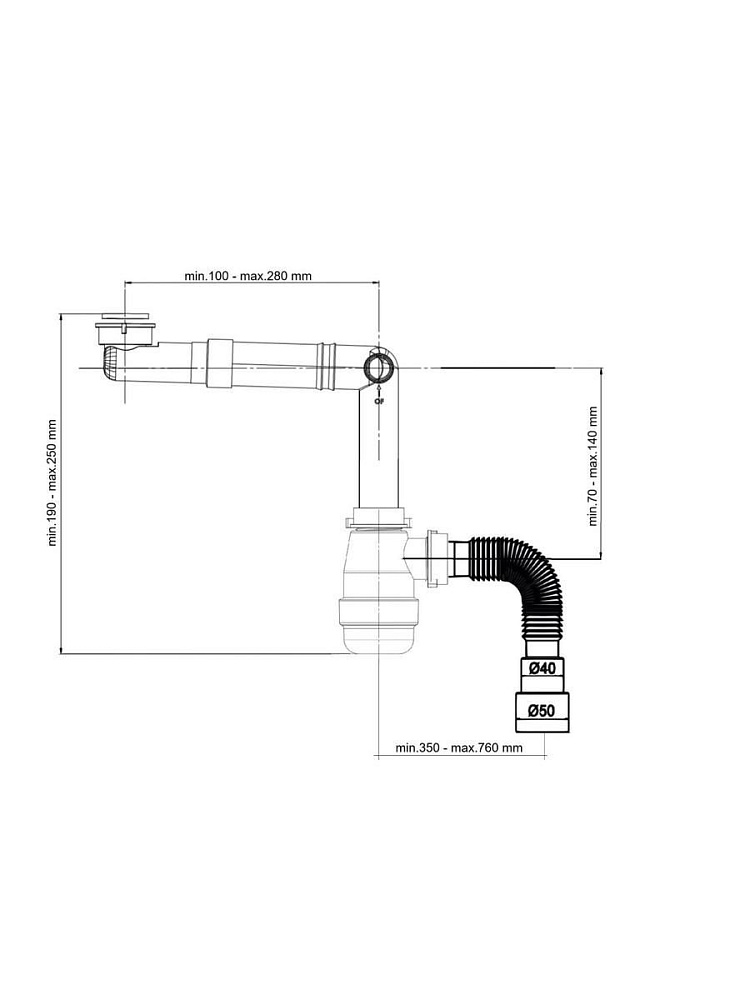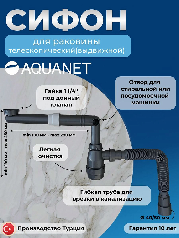 Отзывы о Сифон для раковины в ванную телескопический c накидной гайкой 1 1/4" экономящий пространство, d40/50, серый Aquanet