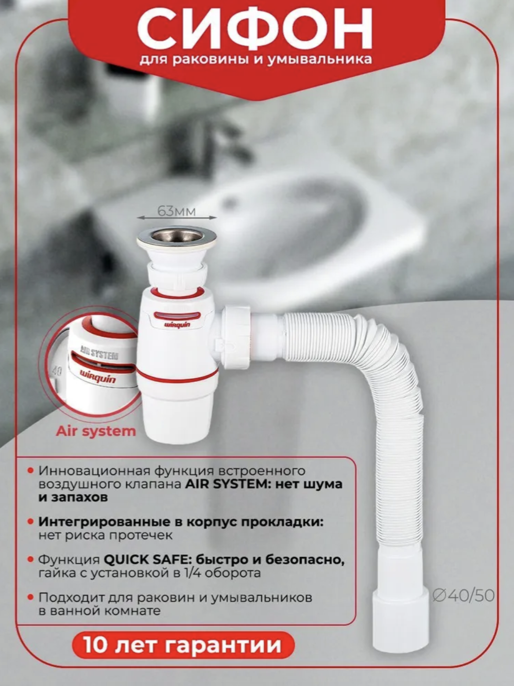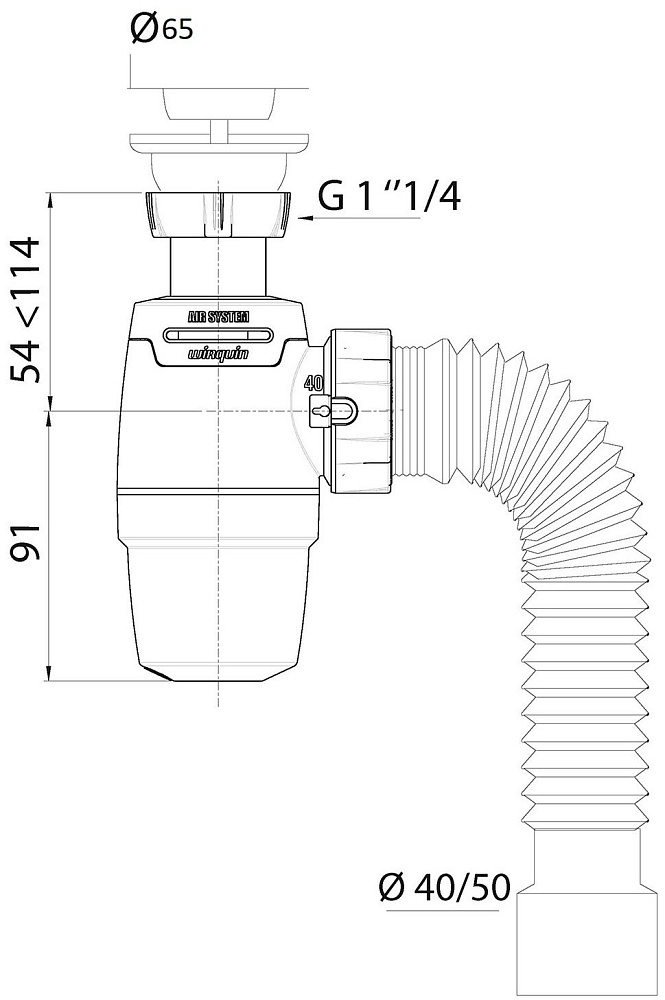 Сифон для раковины Wirquin Neo Air 30987093/30987079 32 мм, бутылочный, глянцевый белый