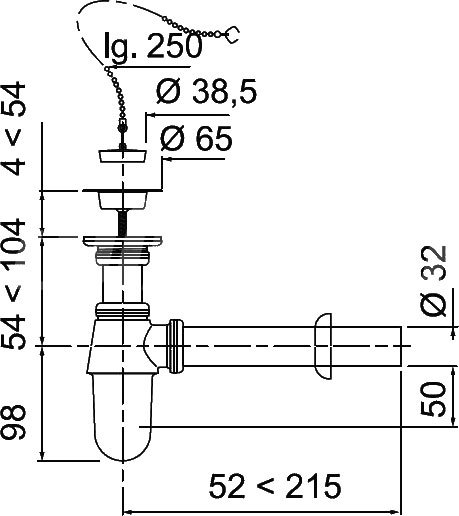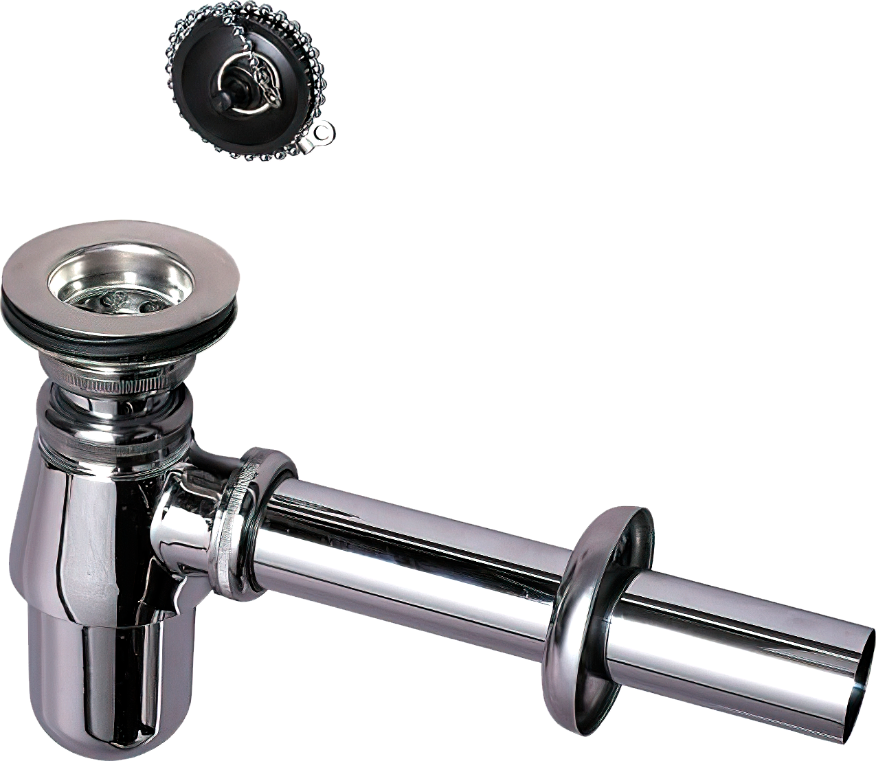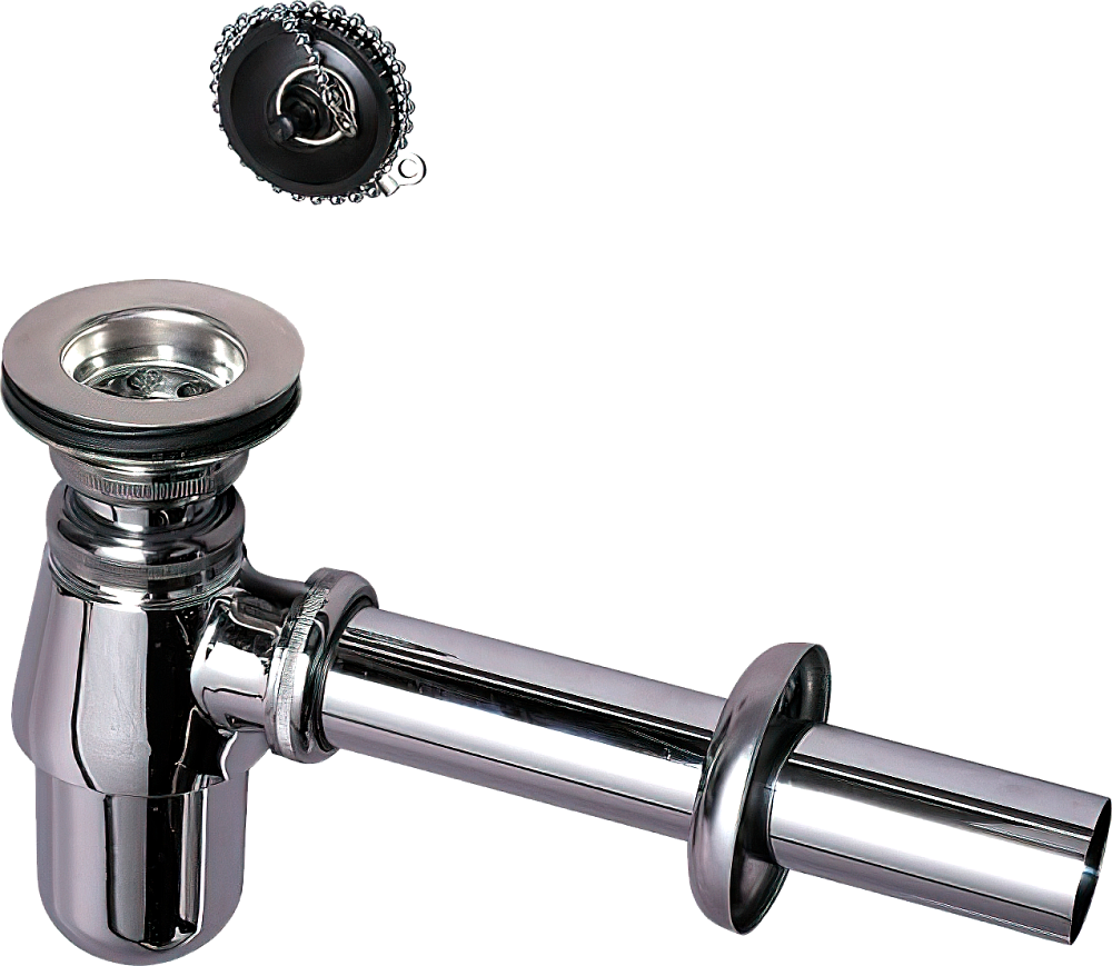 Сифон для раковины Wirquin SL213 32 мм, бутылочный, глянцевый хром, с пробкой