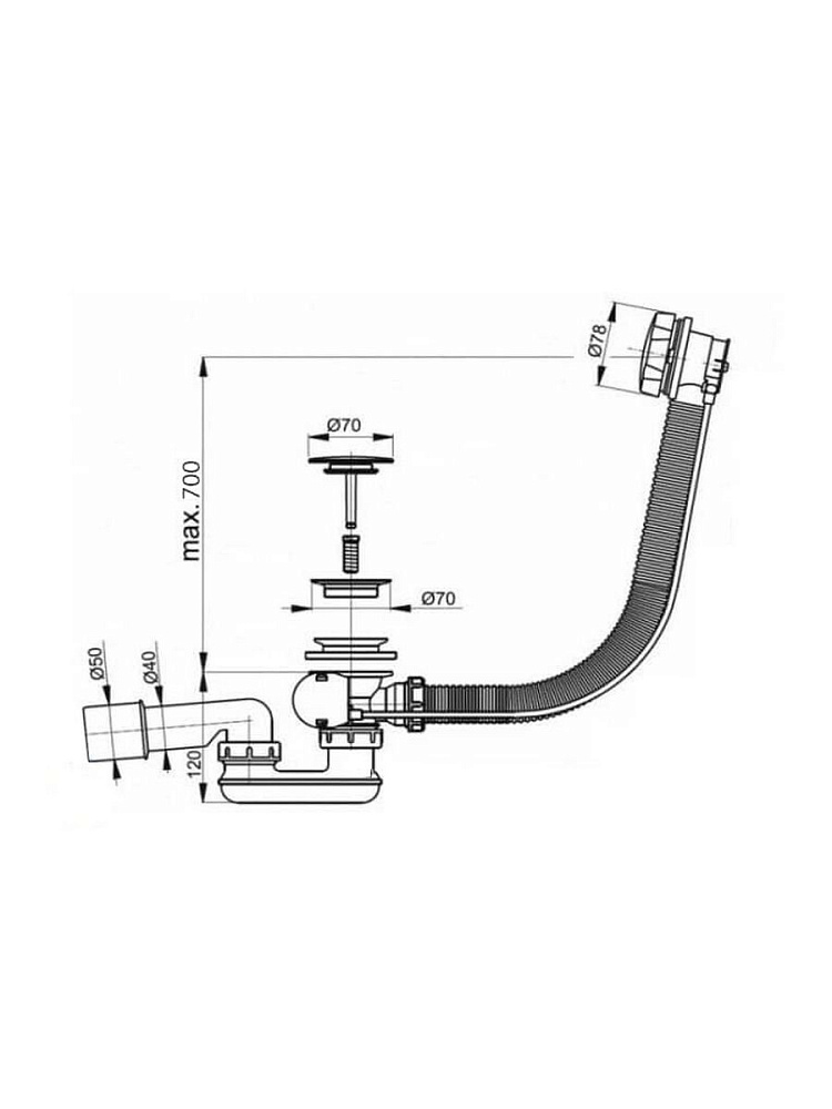Слив перелив для ванны полуавтомат Aquanet V55R 70см белый