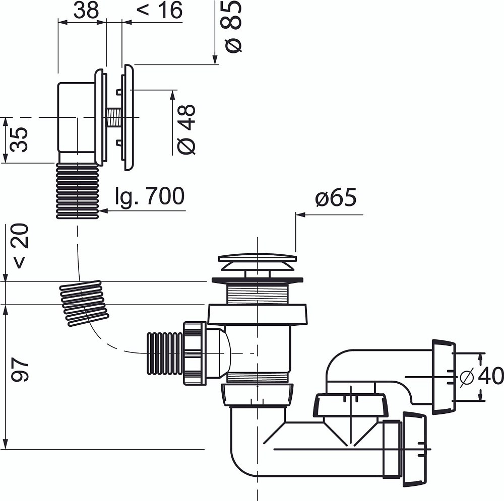 Слив-перелив для ванны Wirquin 30975014 50 мм, полуавтомат, хром, с сифоном
