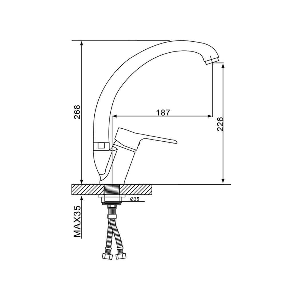 Смеситель для кухни 35к G4136 GAPPO высокий пов. излив, п/гайку, ХРОМ