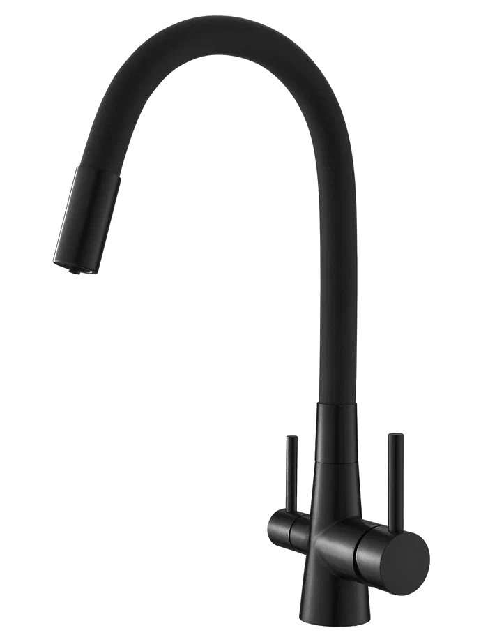 Однозахватный смеситель для кухни с гибким поворотным изливом Agger Elegant с возможностью подключения фильтра – эргономичное решение для тех, кто заботится о своем здоровье и здоровье близких. Фирменный керамический картридж Agger и эргономичный рычаг делают легким управление напором и температурой воды. Корпус изделия изготовлен из высококачественной нержавеющей стали, не подверженной коррозии от длительного контакта с водой. Покрытие в цвете матовый черный, за которым просто ухаживать мягкой салфеткой, нанесено методом порошковой окраски с многоступенчатой системой подготовки и высокотемпературной обработкой. Встроенный аэратор Neoperl экономит воду и, обогащая струю воздухом, делает ее мягкой без брызг. Смеситель оснащен гибким изливом, что упростит мытье посуды и гигиеническую уборку мойки. В комплекте гибкая подводка (600 мм). Стандарт подводки - 1/2.