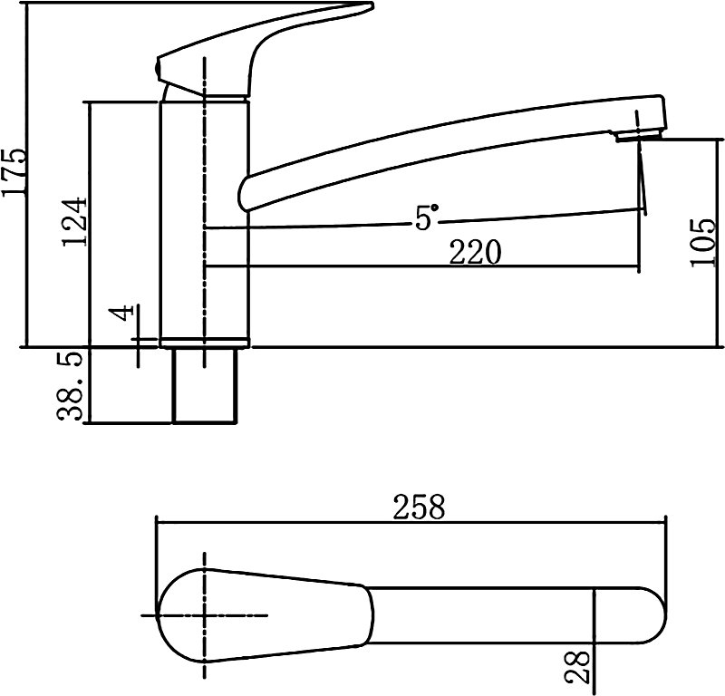 управлением. Фиксированный излив исключает вероятность протечек. Снабжен
