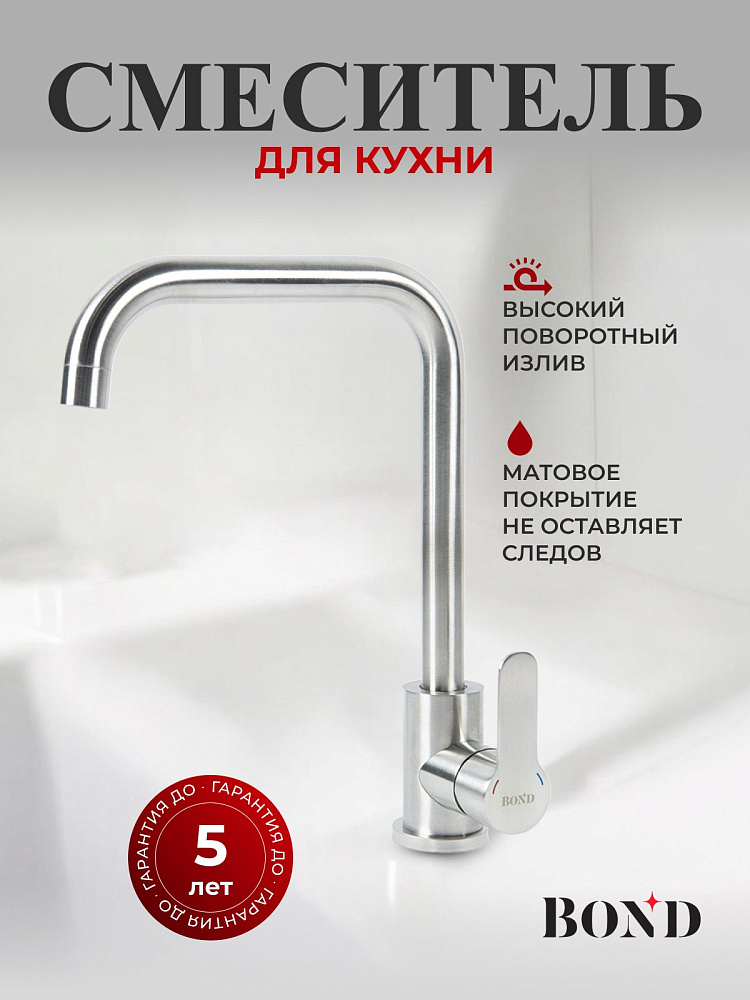 Отзывы о Смеситель для кухни BOND Стиль B61-0300 сталь