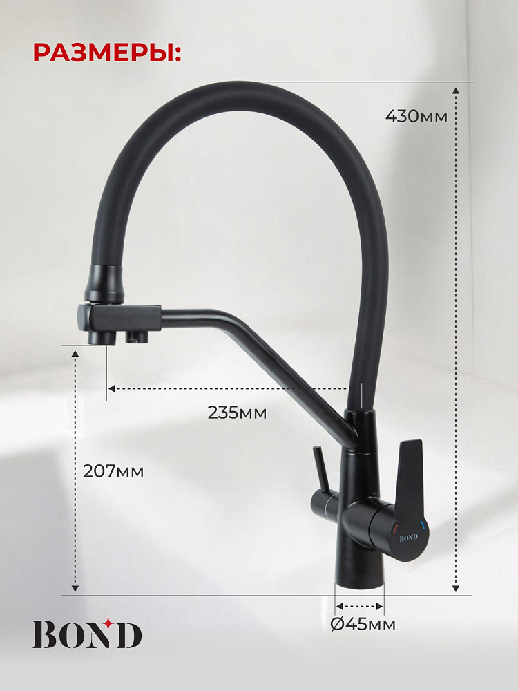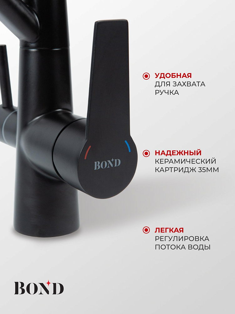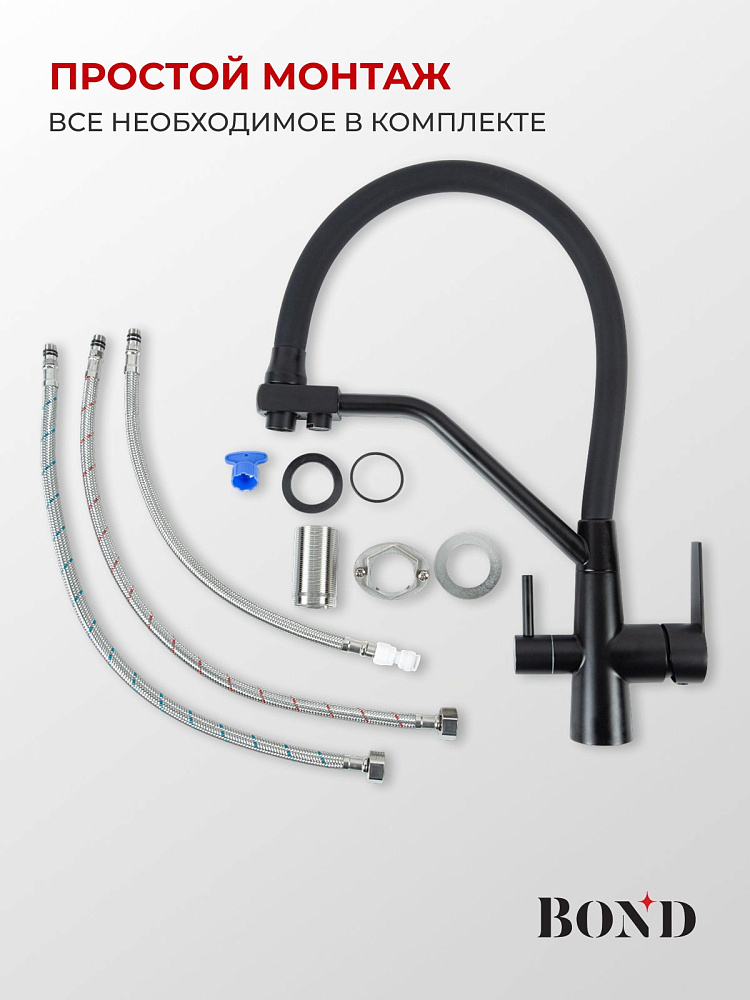 Отзывы о Смеситель для кухни BOND Стиль B64-0488 матовый черный