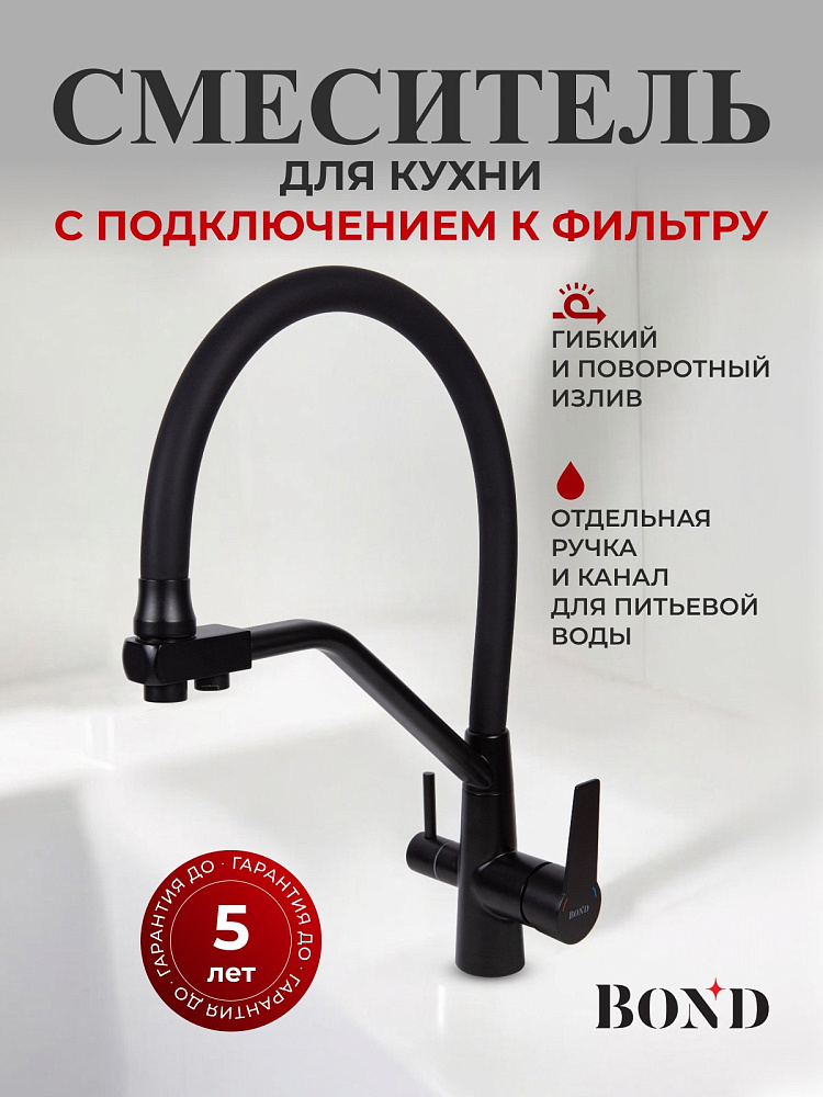 Смеситель для кухни BOND Стиль B64-0488 матовый черный