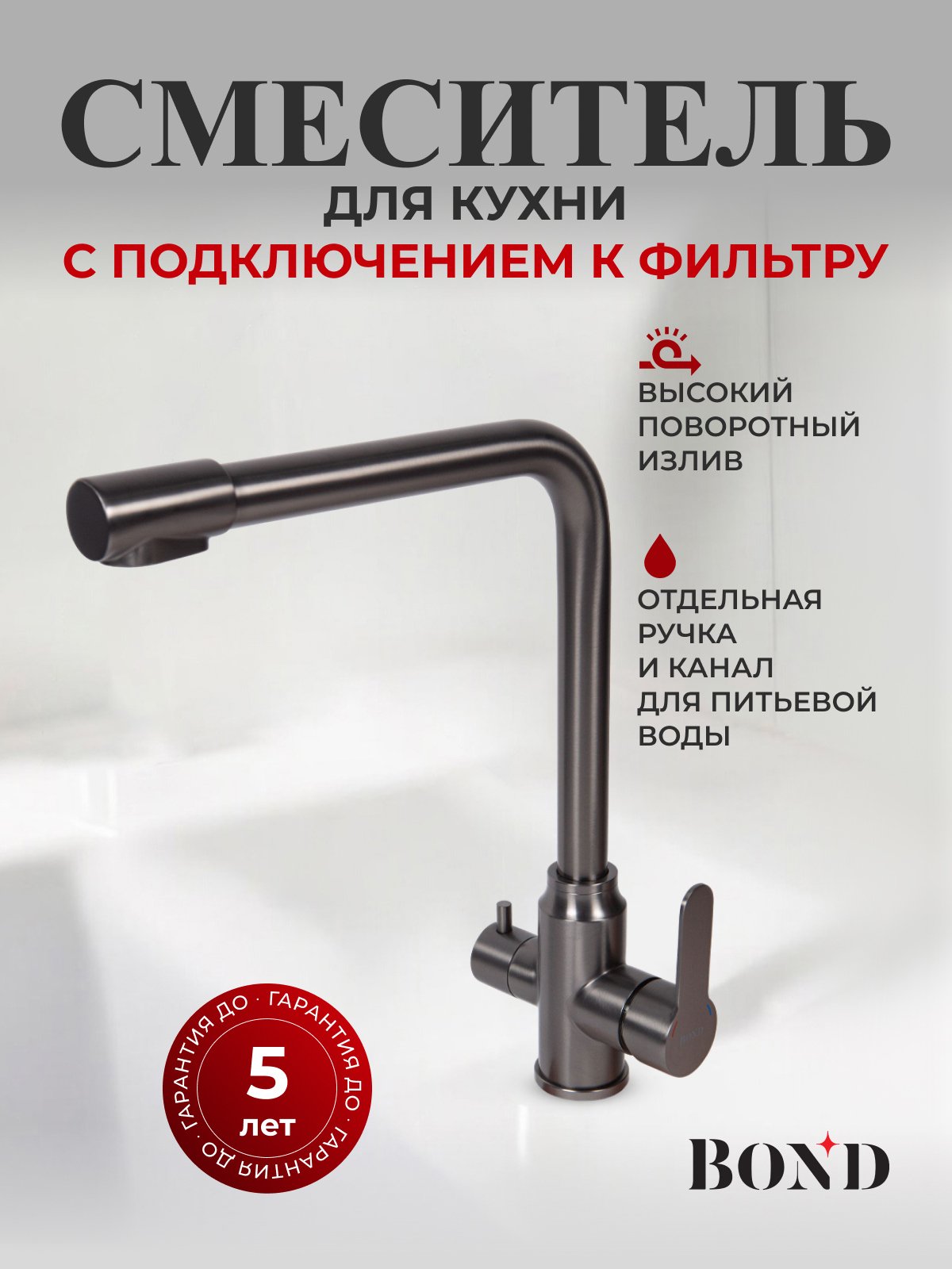Отзывы о Смеситель для кухни BOND Стиль B65-0477 графит