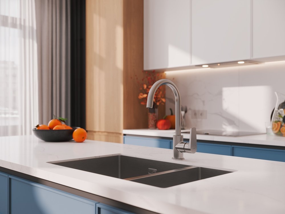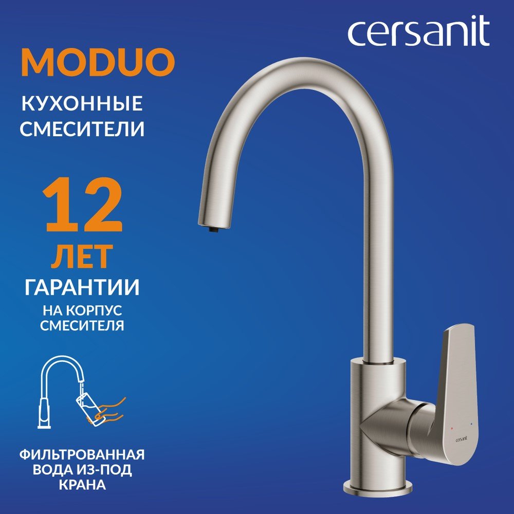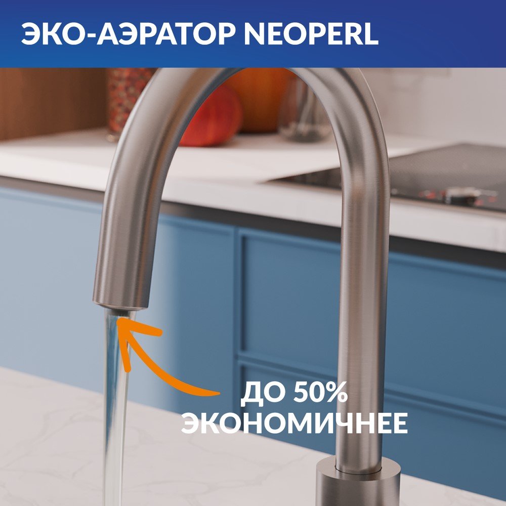 Смесители Moduo с дополнительным каналом для фильтрованной воды сделают вас настоящим повелителем воды. Поток с фильтрованной на проточную переключается с помощью одной ручки. Ваш стакан наполнится питьевой водой всего за один поворот! Латунный корпус надежно защищен от гидроударов. Стильное оборудование представлено в актуальном сатине. Стойкое покрытие PVD будет радовать красотой долгие годы. За такими смесителями просто ухаживать, для поддержания эстетичного внешнего вида достаточно лишь стирать капли воды после использования. Корпус смесителя создан из латуни — безопасного и долговечного материала. Сплав не выделяет вредных веществ в воду, что особенно важно при использовании для питьевой воды или приготовления пищи. В составе латуни преобладает медь, которая защищает смеситель изнутри от коррозии и трещин. Именно это свойство обеспечивает долгий срок службы и защиту от протечек. Внутри смесителя установлен картридж, обеспечивающий более 500 циклов открытия и закрытия, что обеспечивает исправную работу годами. Смеситель позволяет переключать воду с фильтрованной на проточную с помощью одной общей ручки. Это стало возможным благодаря двухканальному аэратору, который обеспечивает раздельную подачу воды без смешивания. Это высокотехнологичное решение не только экономит место, но и избавляет от визуального шума на кухне. Излив смесителя поворотный — его можно вращать на 360 градусов и направлять струю воды именно туда, куда нужно. Смеситель оснащен аэратором Neoperl, который обеспечивает стабильно ровный поток воды даже при плохом напоре. Он позволяет экономить до 50% воды по сравнению с обычными смесителями.