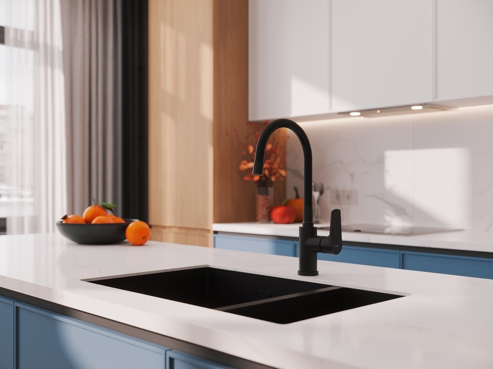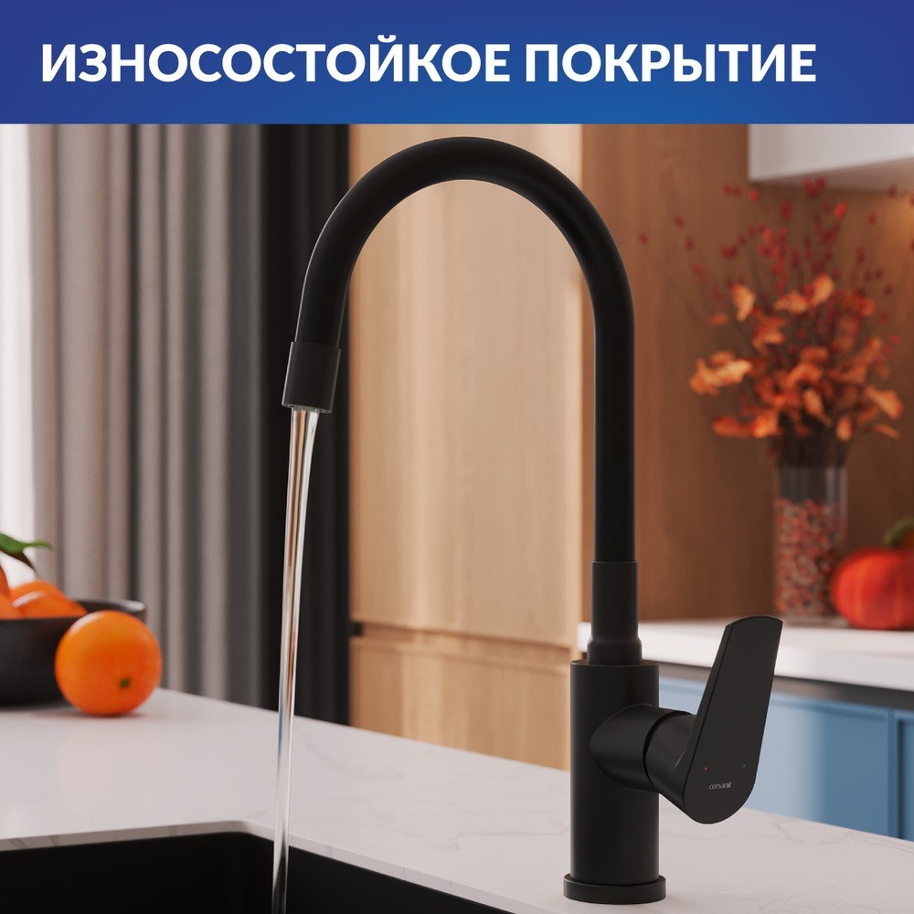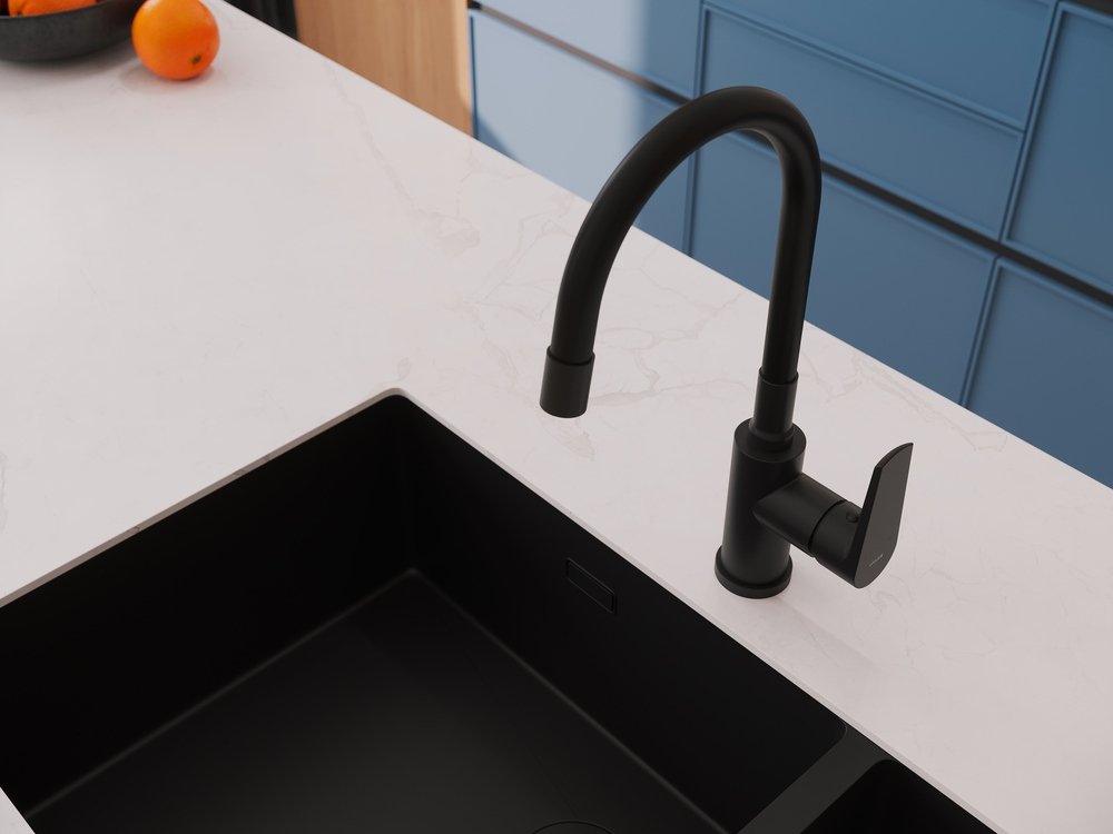Смеситель для кухни Cersanit Модуо (Moduo) 68230 с гибким изливом, матовый черный