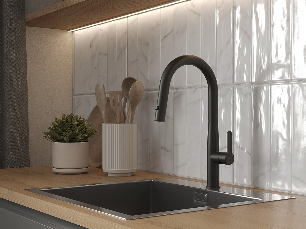 Плавные линии и трендовая овальная форма смесителей Oliva создают гармоничный современный интерьер. Выдвижная лейка с двумя режимами подачи воды помогает решать бытовые задачи — от мытья раковины и овощей до наполнения крупных ёмкостей. С таким смесителем легко помыть овощи и фрукты, набрать воду в отдельно стоящую ёмкость, а также ополоснуть всю мойку. Струя воды легко добирается до самых дальних углов раковины. Модель в стильном чёрном цвете обладает матовым износостойким покрытием, выполненным методом электрофореза. Матовая поверхность не трескается и не отслаивается, обеспечивая сохранение цвета и эстетического вида даже при постоянном контакте с водой и солями. Смесители Oliva оснащены аэраторами Neoperl, которые дарят больший комфорт при использовании и помогают экономить до 50% воды по сравнению с обычными смесителями.