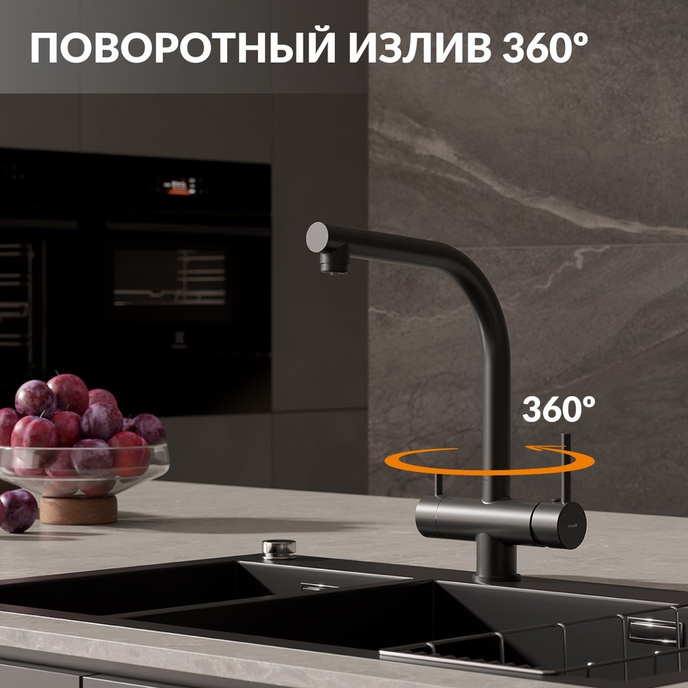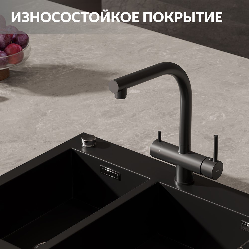 Смеситель Crea с выверенным лаконичным дизайном оснащен инновационной технологией двухканальной подачи воды. Проточная и фильтрованная вода поступает из одного излива по двум разным каналам. Стильное оборудование с понятным минималистичным дизайном представлено в актуальном сатине. Стойкое покрытие PVD будет радовать красотой долгие годы. За такими смесителями просто ухаживать, для поддержания эстетичного внешнего вида достаточно лишь стирать капли воды после использования. Корпус смесителя создан из латуни — надежного и долговечного материала. Сплав не выделяет вредных веществ в воду, что особенно важно при использовании для питьевой воды или приготовления пищи. В составе латуни преобладает медь, которая защищает смеситель изнутри от коррозии и трещин. Именно это свойство обеспечивает долгий срок службы и защиту от протечек. Внутри смесителя установлен картридж, обеспечивающий более 500 циклов открытия и закрытия, что обеспечивает исправную работу годами. Смеситель предусматривает возможность подключения фильтрованной воды. Проточная и фильтрованная вода включаются двумя разными ручками. Функция позволяет экономить место на кухне, средства на поиск дополнительного оборудования и сохранить в целости поверхность, на которую устанавливается смеситель. Излив смесителя поворотный — его можно вращать на 360 градусов и направлять струю воды именно туда, куда нужно. Смеситель оснащен аэратором Neoperl, который обеспечивает стабильно ровный поток воды даже при плохом напоре. Насадка позволяет экономить до 50% воды по сравнению с обычными смесителями.
