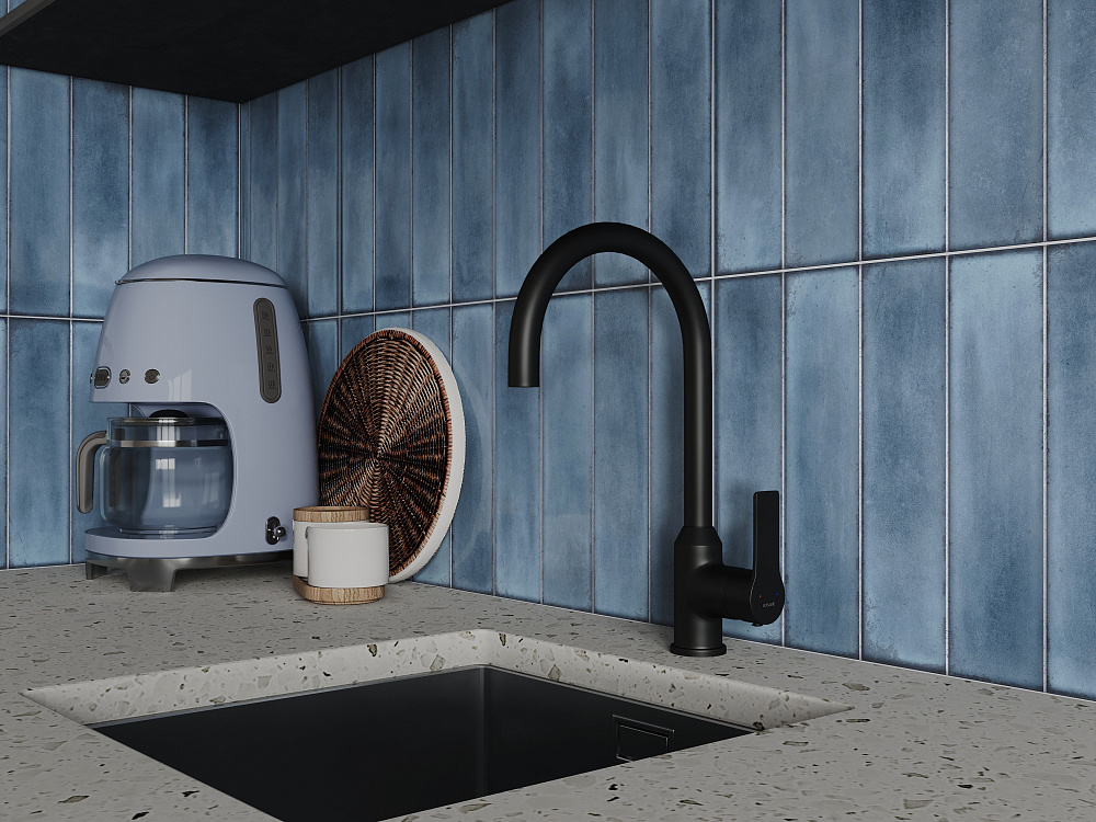 Смеситель для кухни Vibe станет вашим надежным помощником, сочетающим функциональность и элегантный дизайн. Модель с оптимальной высотой подойдет к любому типу раковины. Поворотный излив с углом вращения 360 градусов делает использование максимально комфортным. Корпус смесителя Vibe изготовлен из латуни — прочного и безопасного металла. Он защищает изделие от коррозии изнутри, не боится гидроударов и перепадов давления в трубах, а также не выделяет вредных веществ, что важно для всех членов семьи. Производитель дает 12 лет гарантии на корпус смесителя, а качество всех элементов соответствует ГОСТ. Сердце смесителя — долговечный керамический картридж, рассчитанный не менее чем на 500 тыс. циклов использования. Чёрное матовое покрытие выполнено методом электрофореза, что делает его устойчивым к коррозии. Матовая поверхность не трескается и не отслаивается, обеспечивая сохранение цвета даже при постоянном контакте с водой и солями.