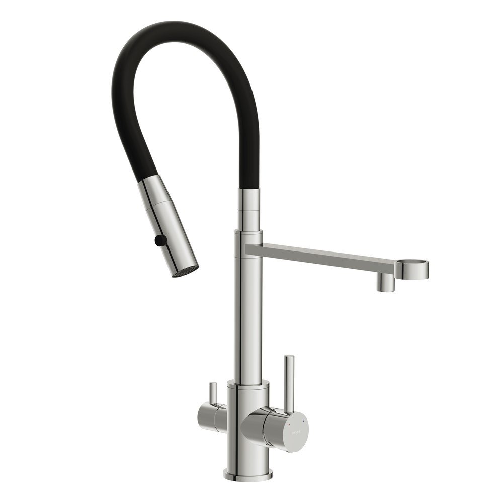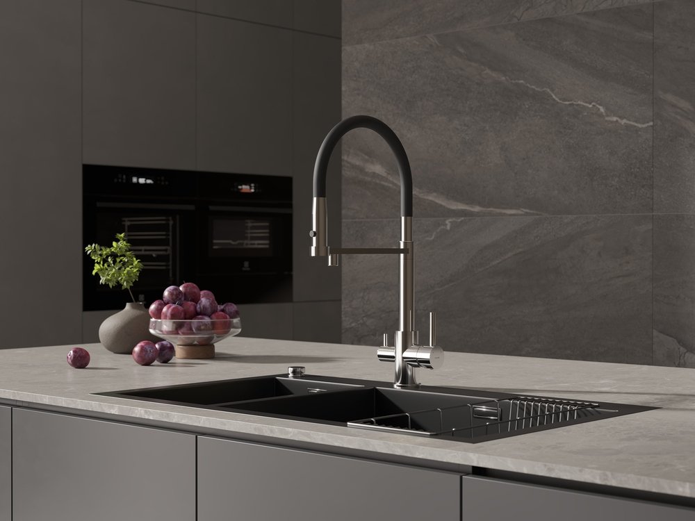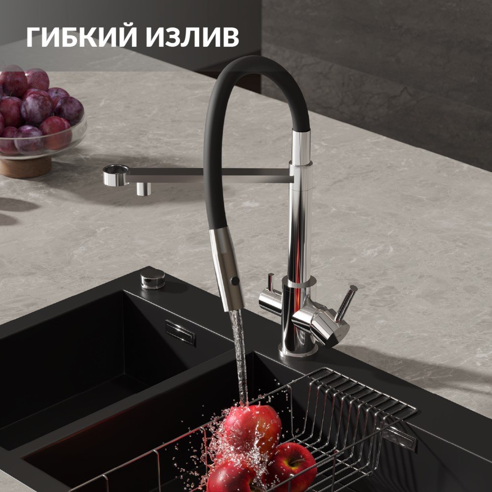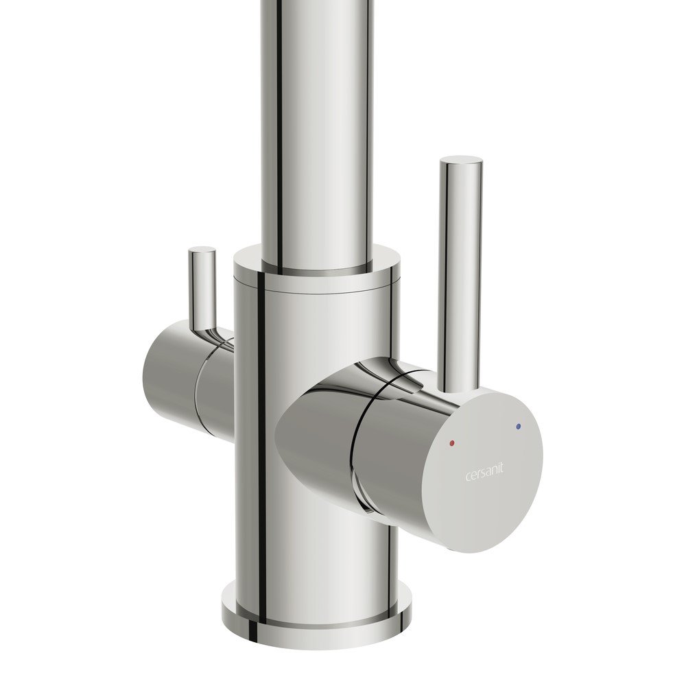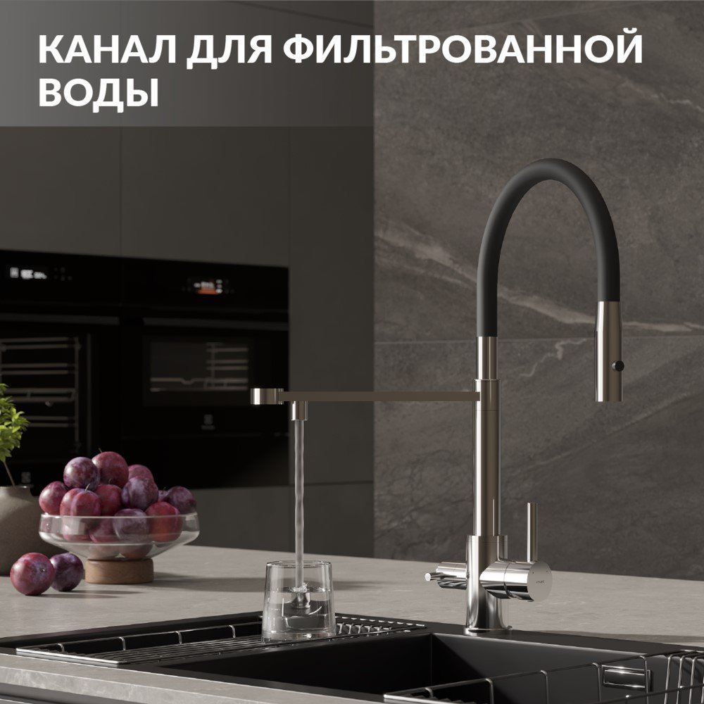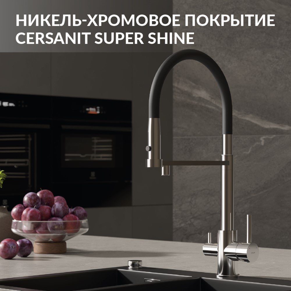 Стильный и современный смеситель Zen станет вашей технологичной находкой. Корпус, изготовленный из надежной и долговечной латуни, защищен от гидроударов. Гибкий излив и отдельный канал для фильтрованной воды, а также ручка, позволяющая установить смеситель вплотную к стене, эффективно экономят пространство на кухне. Модель с футуристичным и нетривиальным дизайном станет украшением кухни. Сплав не выделяет вредных веществ в воду, что особенно важно при использовании для питьевой воды или приготовления пищи. В составе латуни преобладает медь, которая защищает смеситель изнутри от коррозии и трещин. Именно это свойство обеспечивает долгий срок службы и защиту от протечек.Внутри смесителя установлен картридж, обеспечивающий более 500 циклов открытия и закрытия, что гарантирует исправную работу годами. Смесители Cersanit комфортны в эксплуатации даже при установке вплотную к стене. Ручка Cold-start поворачивается на себя, а ее закрытое положение — вертикальное. Продуманная подача воды — ещё одна заслуга технологичного картриджа смесителя. В центральном положении при включении подаётся только холодная вода, горячая добавляется только при соответствующем движении рычага. Это решение позволяет экономить ресурс, если в доме установлен бойлер и его постоянное включение нежелательно. Смеситель оснащен гибким изливом из термостойкого силикона. Материал нетоксичен, а потому безопасен для использования на кухне. Выполненный из качественных материалов, он обладает повышенной износостойкостью и устойчивостью к перегибам. С таким решением у хозяек становится больше свободы движения, а значит, и больше комфорта каждый день! Аэратор Neoperl формирует стабильно ровный поток воды даже при плохом напоре. Он позволяет экономить до 50% воды по сравнению с обычными смесителями.