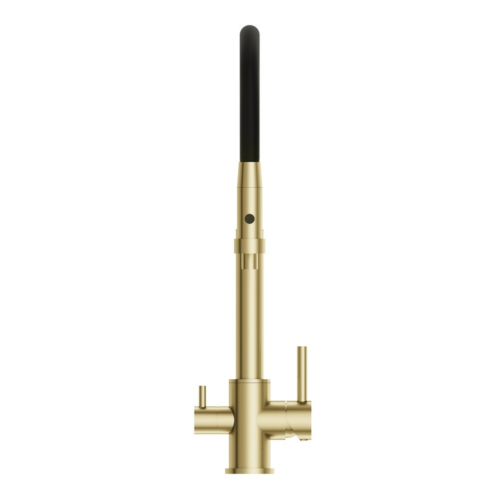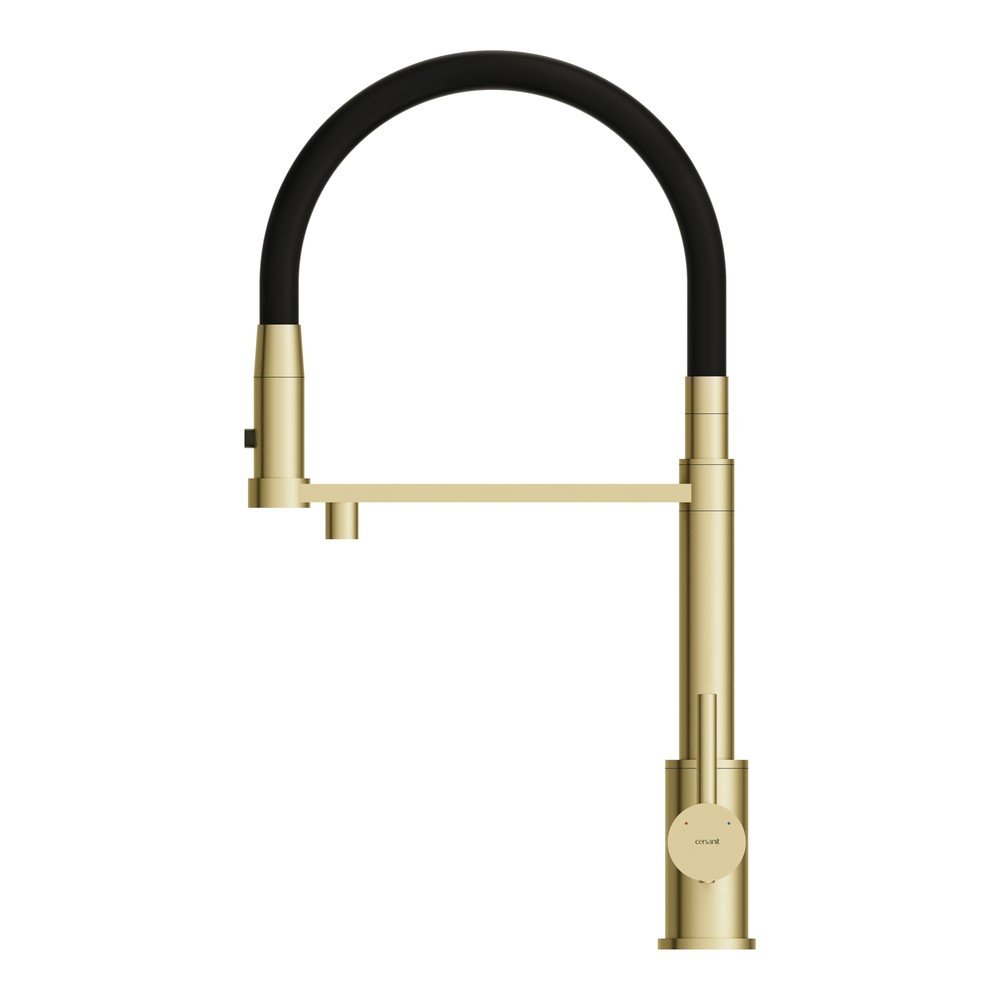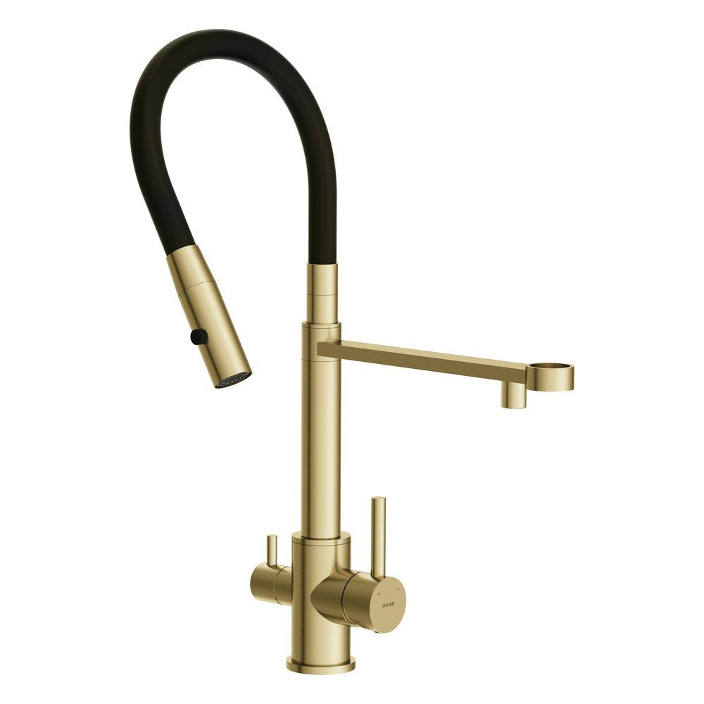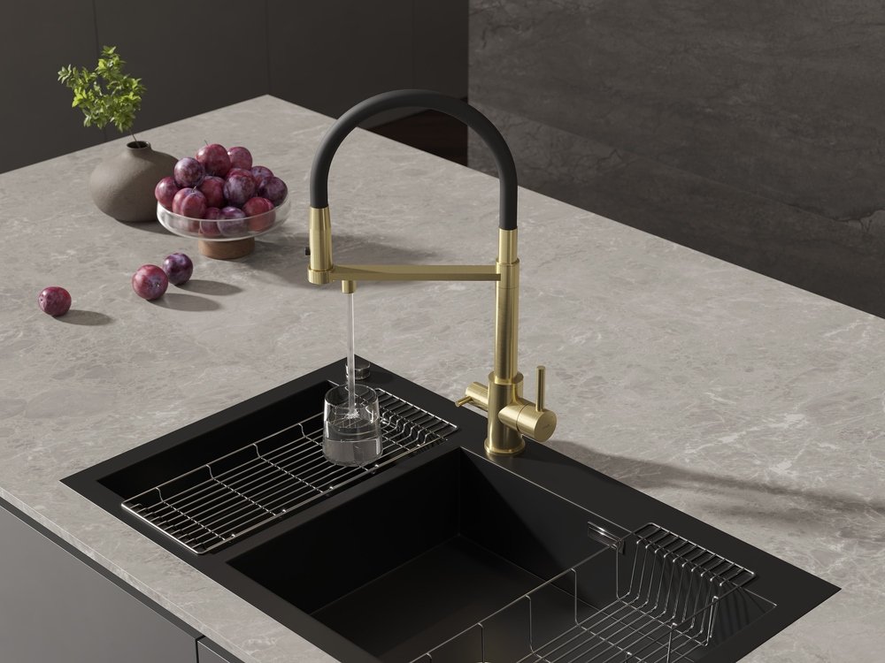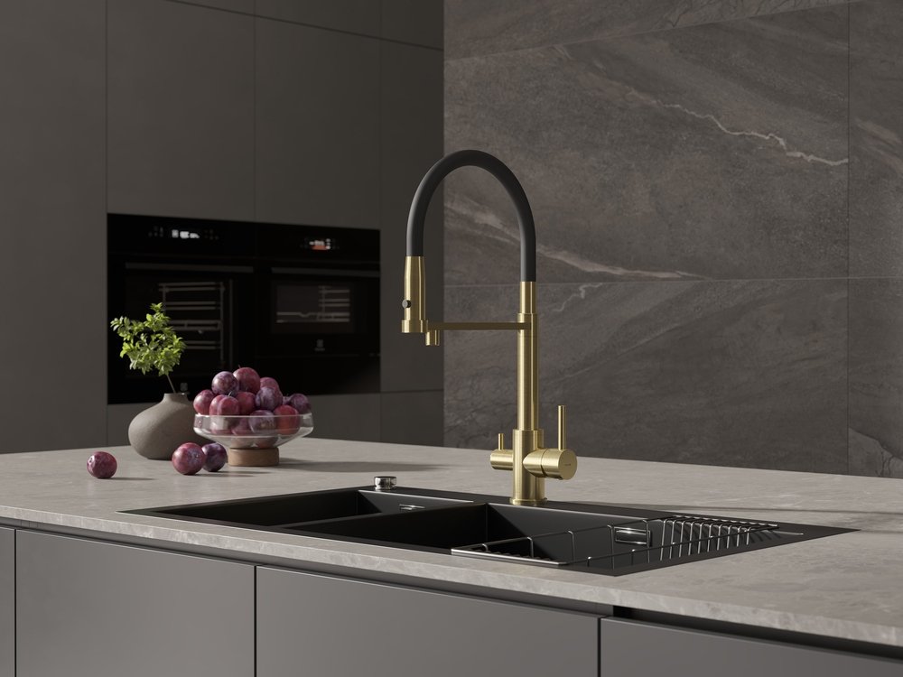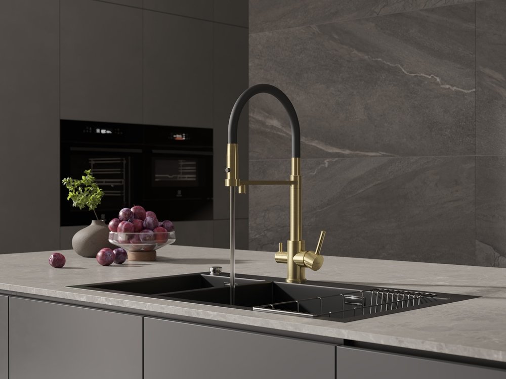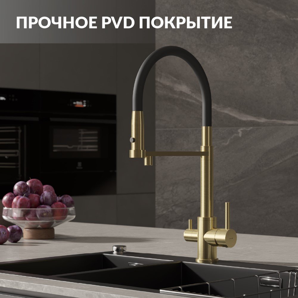 Стильный и современный смеситель Zen станет вашей технологичной находкой. Корпус, изготовленный из надежной и долговечной латуни, защищен от гидроударов. Гибкий излив и отдельный канал для фильтрованной воды, а также ручка, позволяющая установить смеситель вплотную к стене, эффективно экономят пространство на кухне. Модель с футуристичным и нетривиальным дизайном станет украшением кухни. Стойкое PVD-покрытие будет радовать красотой долгие годы. За такими смесителями просто ухаживать, для поддержания эстетичного внешнего вида достаточно лишь стирать капли воды после использования. Корпус смесителя создан из латуни — долговечного материала. Сплав не выделяет вредных веществ в воду, что особенно важно при использовании для питьевой воды или приготовления пищи. В составе латуни преобладает медь, которая защищает смеситель изнутри от коррозии и трещин. Именно это свойство обеспечивает долгий срок службы и защиту от протечек.Внутри смесителя установлен картридж, обеспечивающий более 500 циклов открытия и закрытия, что гарантирует исправную работу годами. Смесители Cersanit комфортны в эксплуатации даже при установке вплотную к стене. Ручка Cold-start поворачивается на себя, а ее закрытое положение — вертикальное. Продуманная подача воды — ещё одна заслуга технологичного картриджа смесителя. В центральном положении при включении подаётся только холодная вода, горячая добавляется только при соответствующем движении рычага. Это решение позволяет экономить ресурс, если в доме установлен бойлер и его постоянное включение нежелательно. Смеситель оснащен гибким изливом из термостойкого силикона. Материал нетоксичен, а потому безопасен для использования на кухне. Выполненный из качественных материалов, он обладает повышенной износостойкостью и устойчивостью к перегибам. С таким решением у хозяек становится больше свободы движения, а значит, и больше комфорта каждый день! Аэратор Neoperl формирует стабильно ровный поток воды даже при плохом напоре. Он позволяет экономить до 50% воды по сравнению с обычными смесителями.